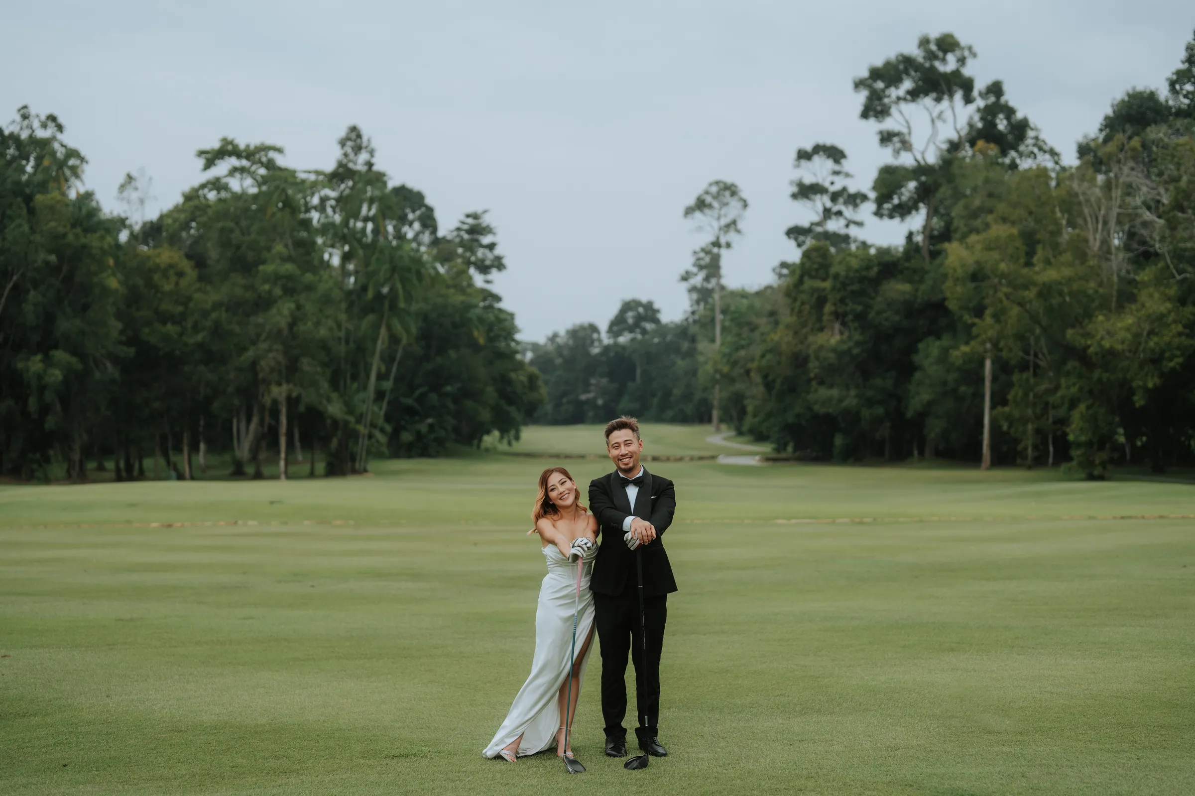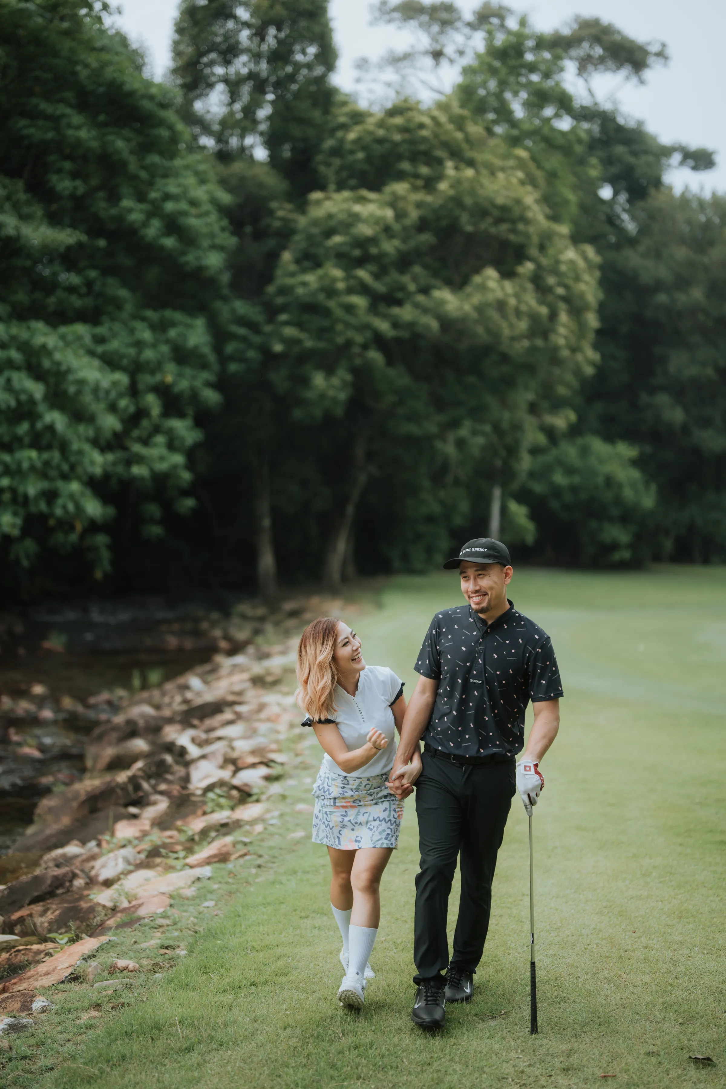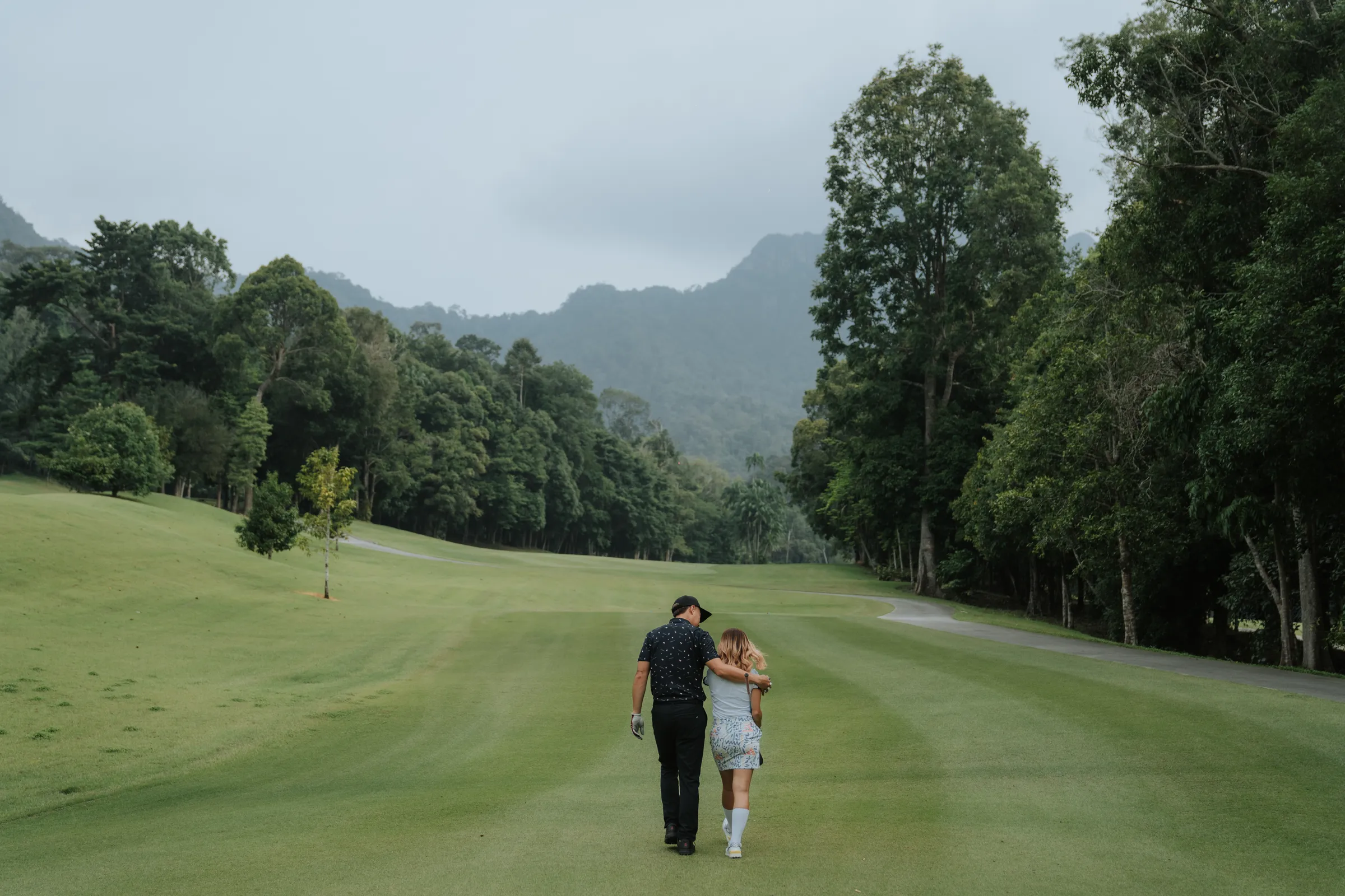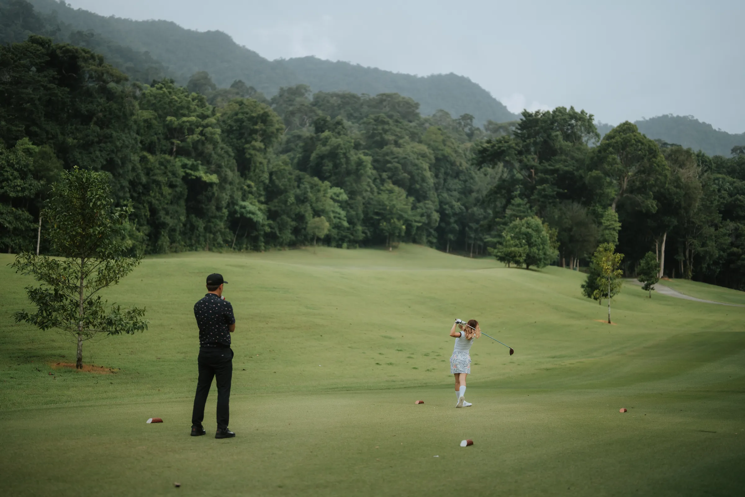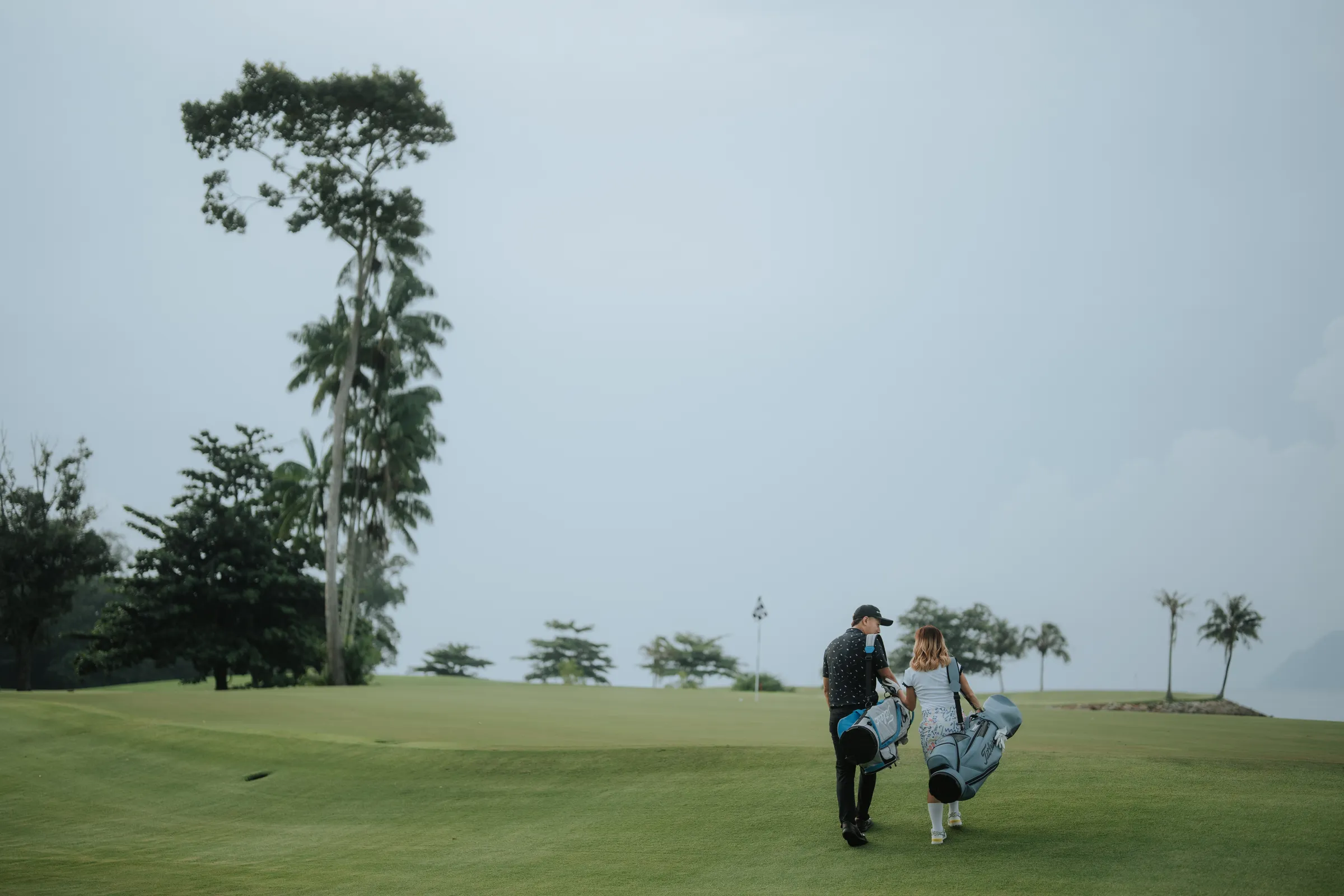 Nestled between the lush rainforest and stunning ocean views, this couple’s pre-wedding photoshoot at Datai Langkawi and The Els Club Teluk Datai beautifully captures their love for golf and each other. With their photographer, a fellow golf enthusiast, they seamlessly blended their passion for the game with their engagement, creating timeless memories.