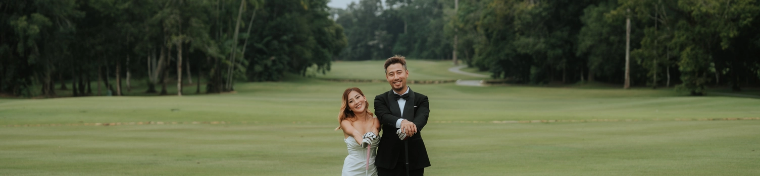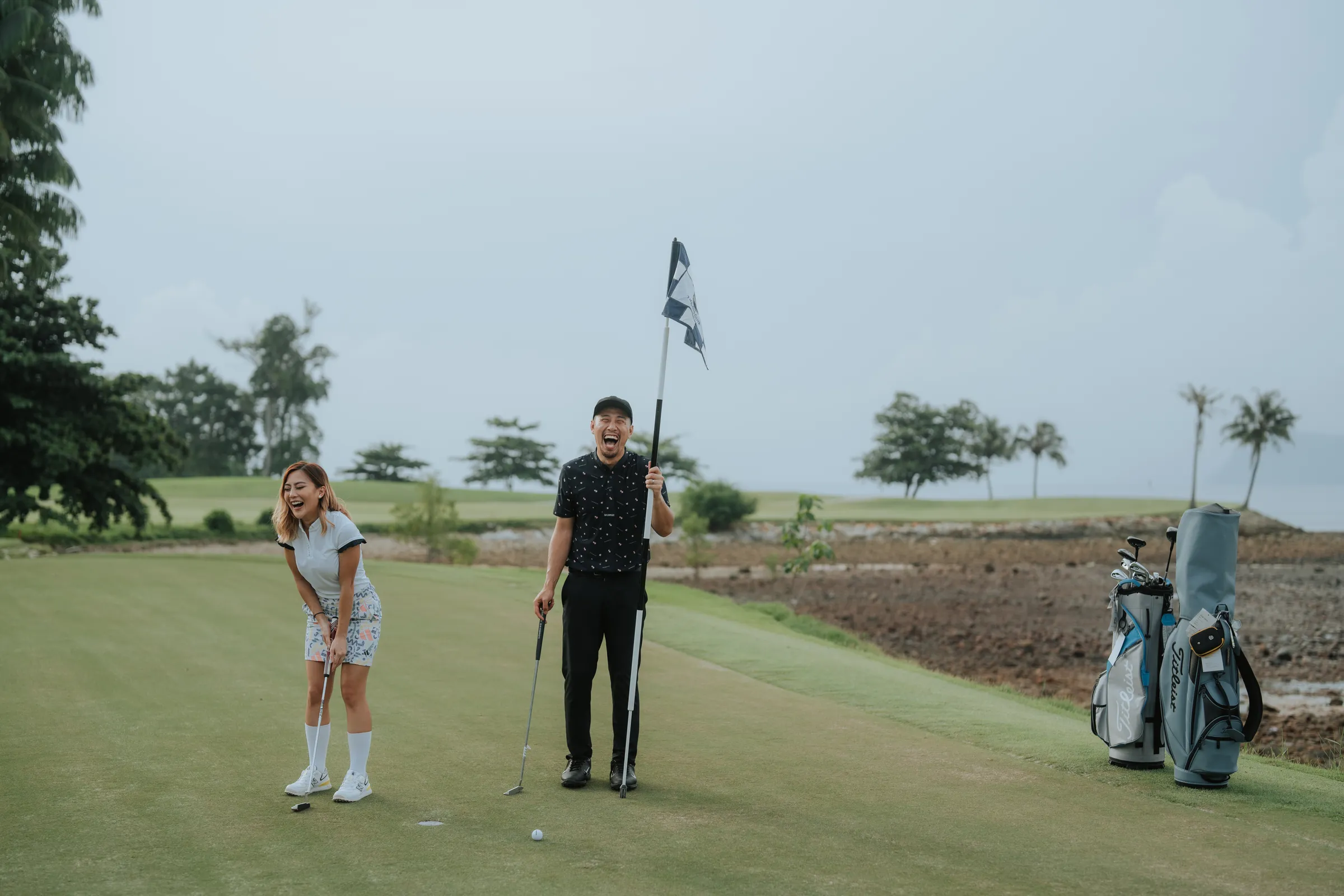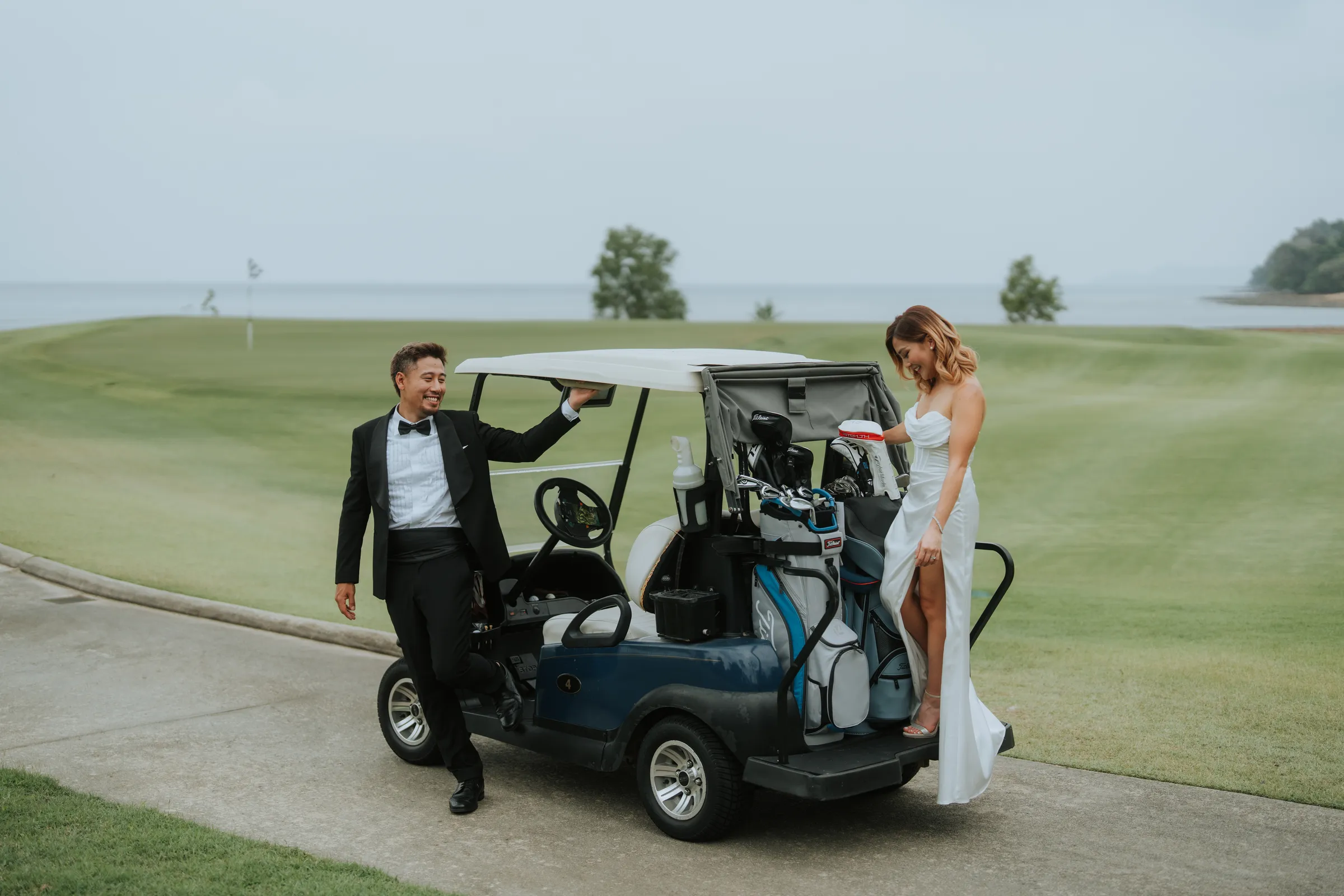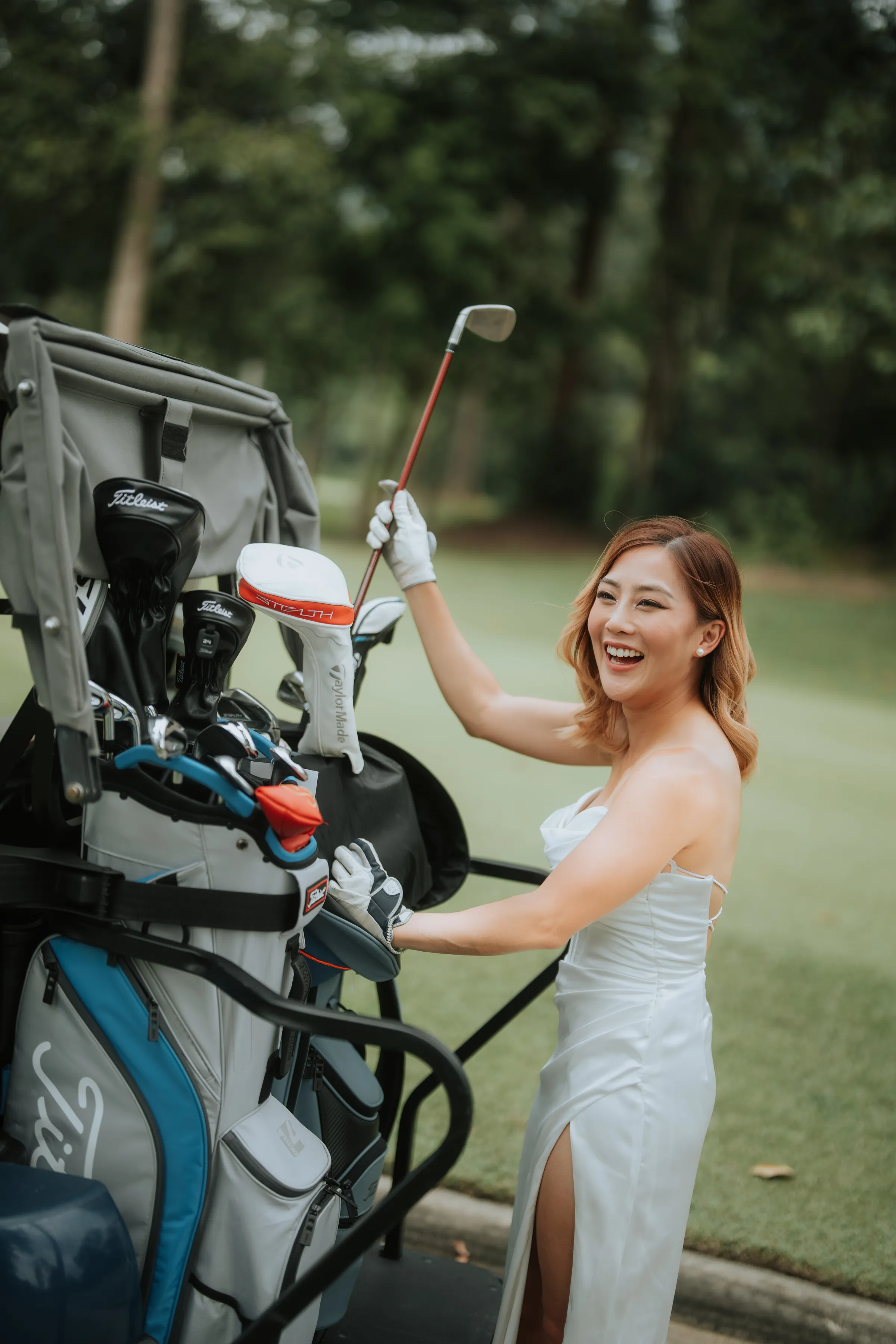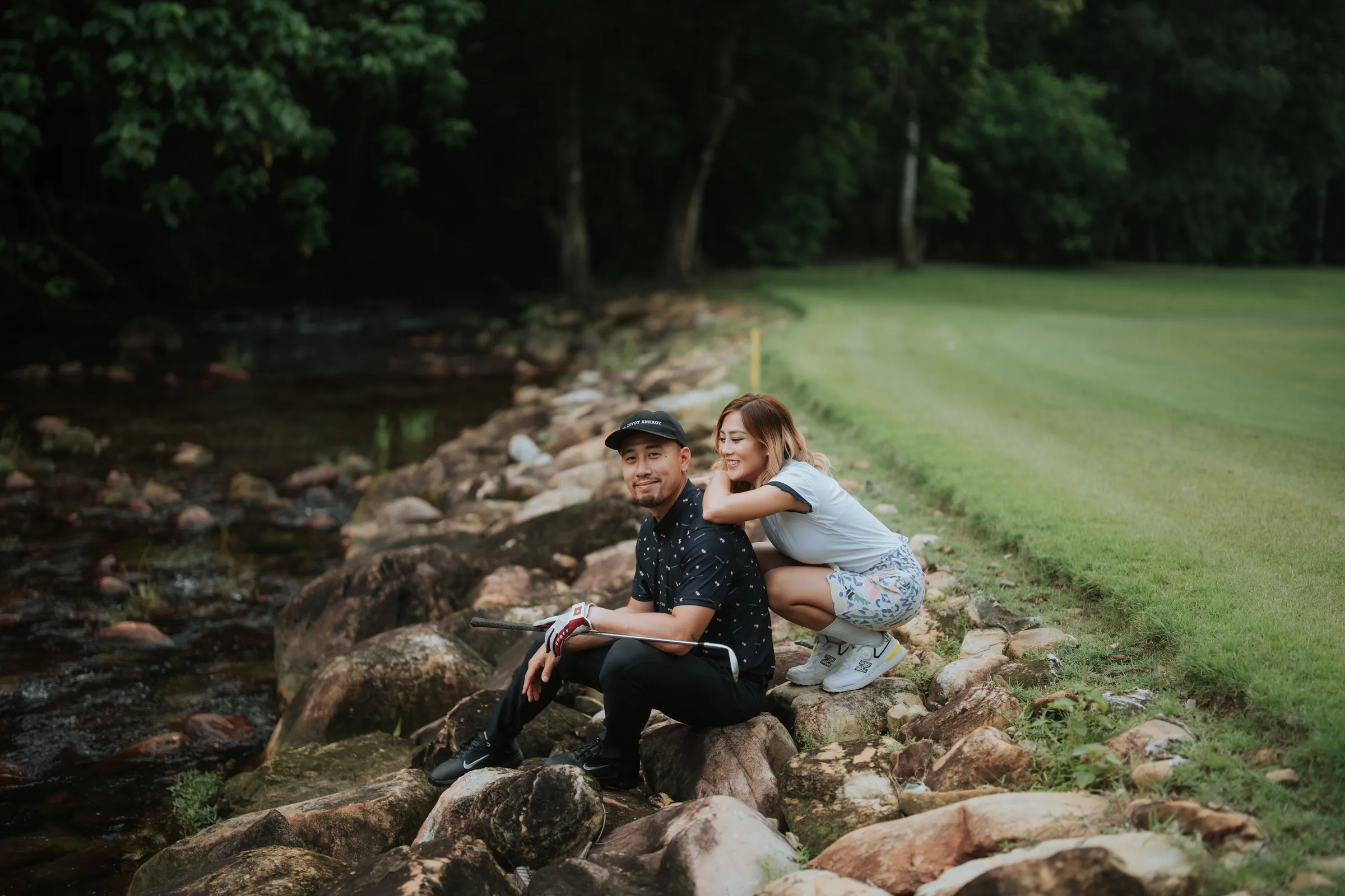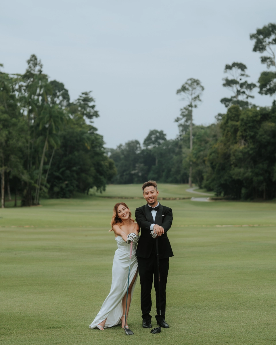Nestled between the lush rainforest and stunning ocean views, this couple’s pre-wedding photoshoot at Datai Langkawi and The Els Club Teluk Datai beautifully captures their love for golf and each other. With their photographer, a fellow golf enthusiast, they seamlessly blended their passion for the game with their engagement, creating timeless memories.