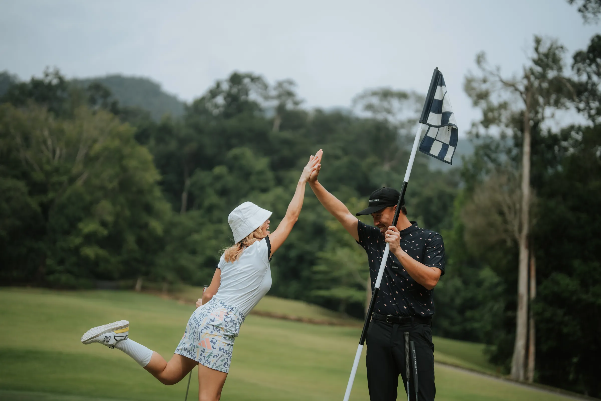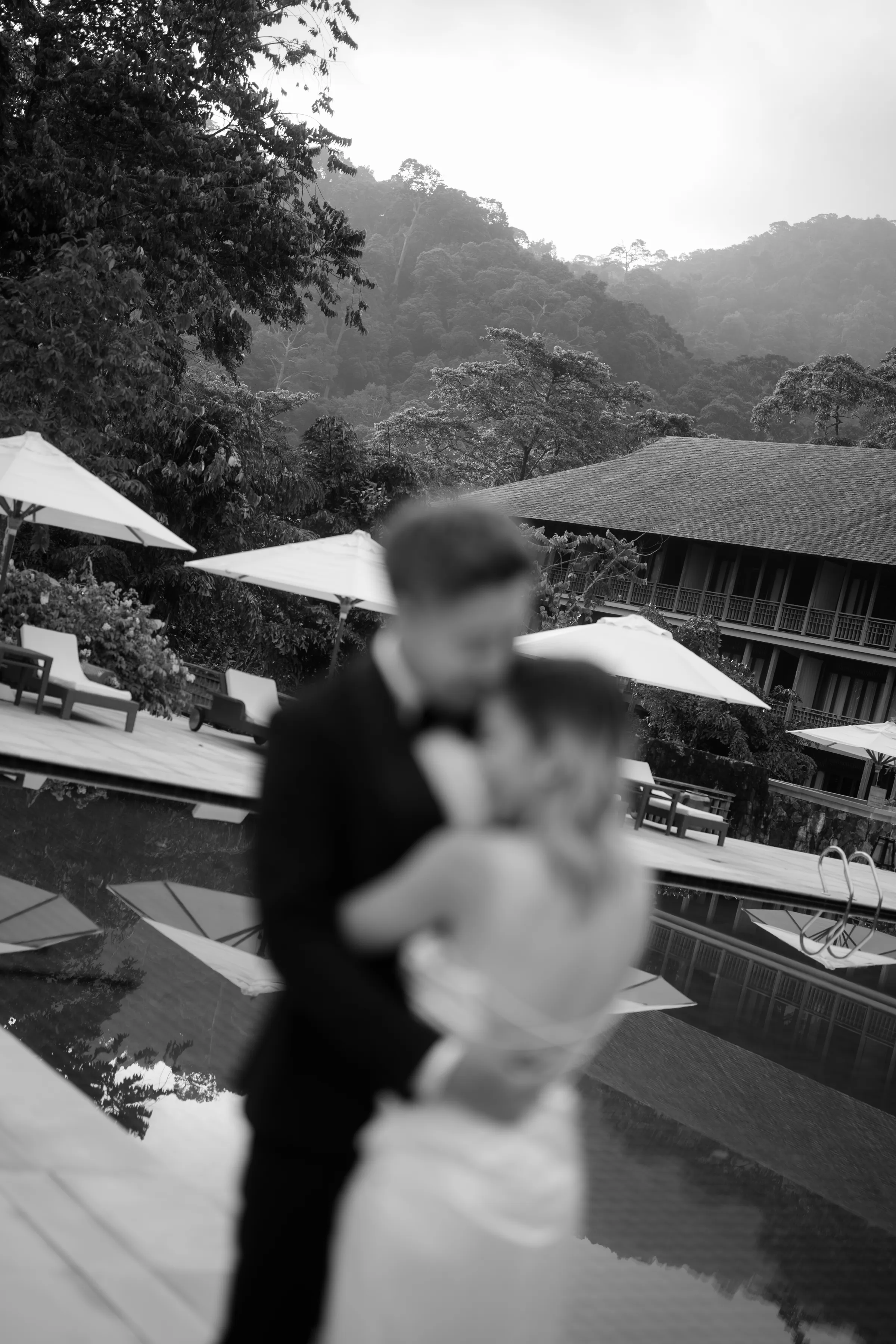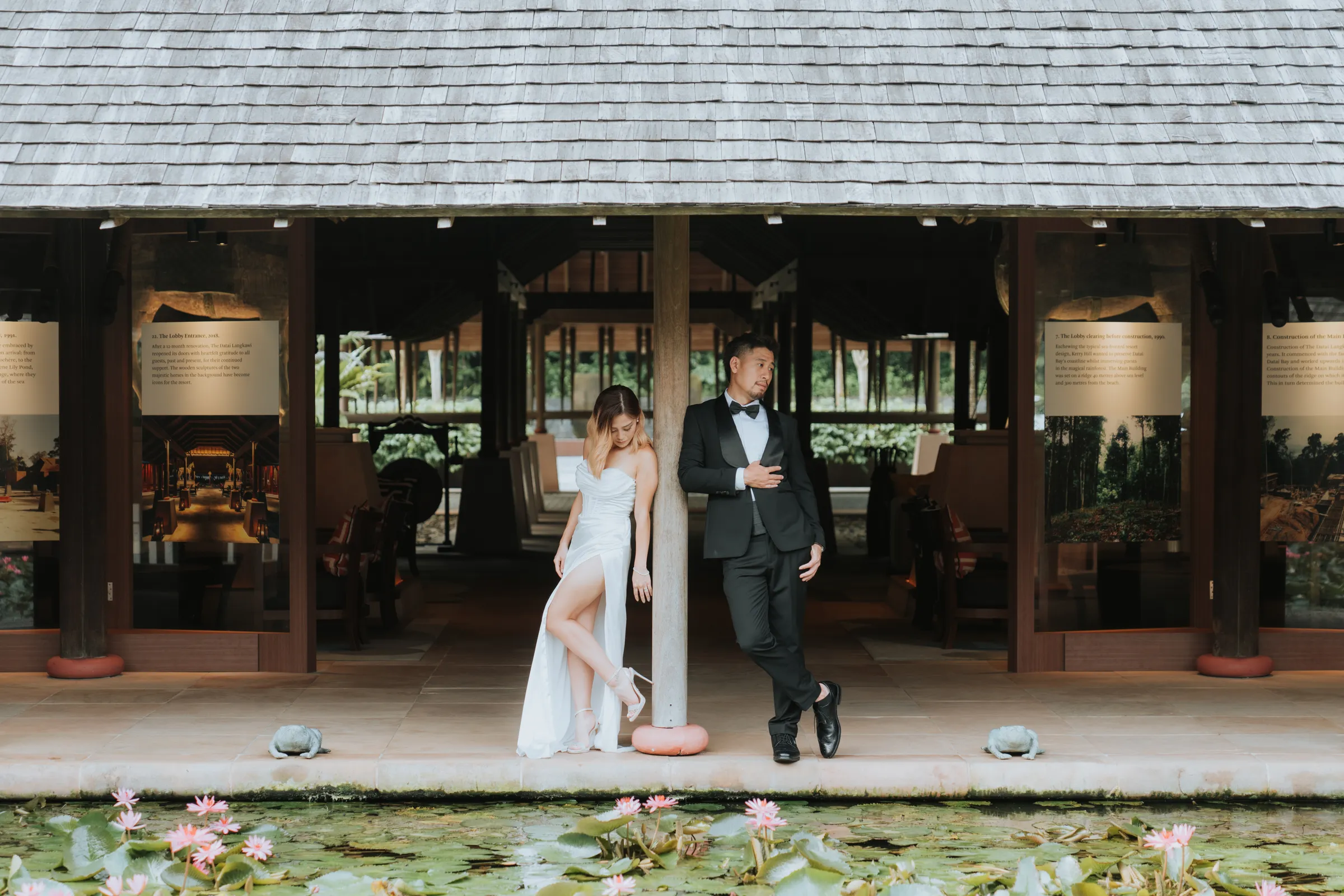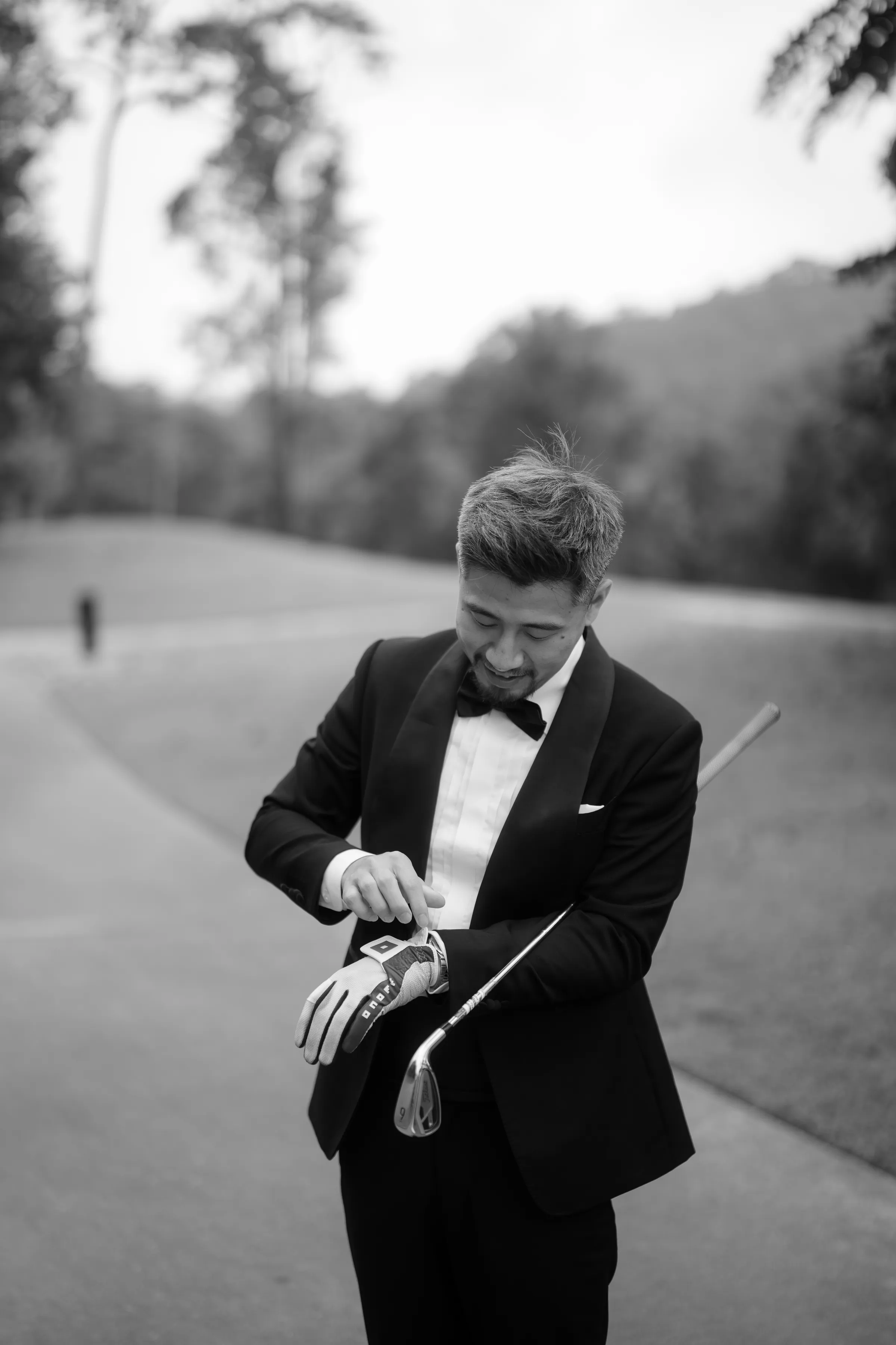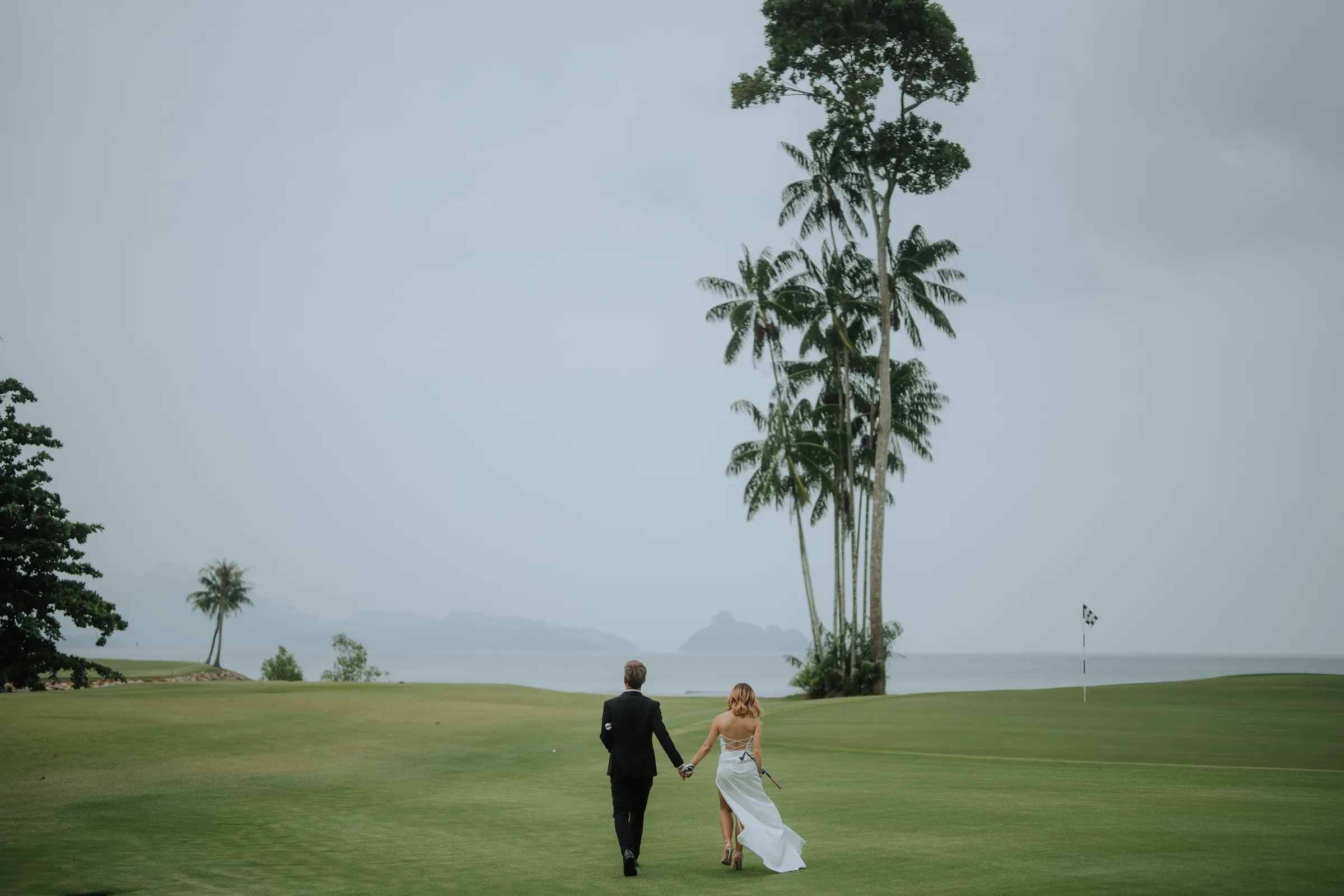 Nestled between the lush rainforest and stunning ocean views, this couple’s pre-wedding photoshoot at Datai Langkawi and The Els Club Teluk Datai beautifully captures their love for golf and each other. With their photographer, a fellow golf enthusiast, they seamlessly blended their passion for the game with their engagement, creating timeless memories.