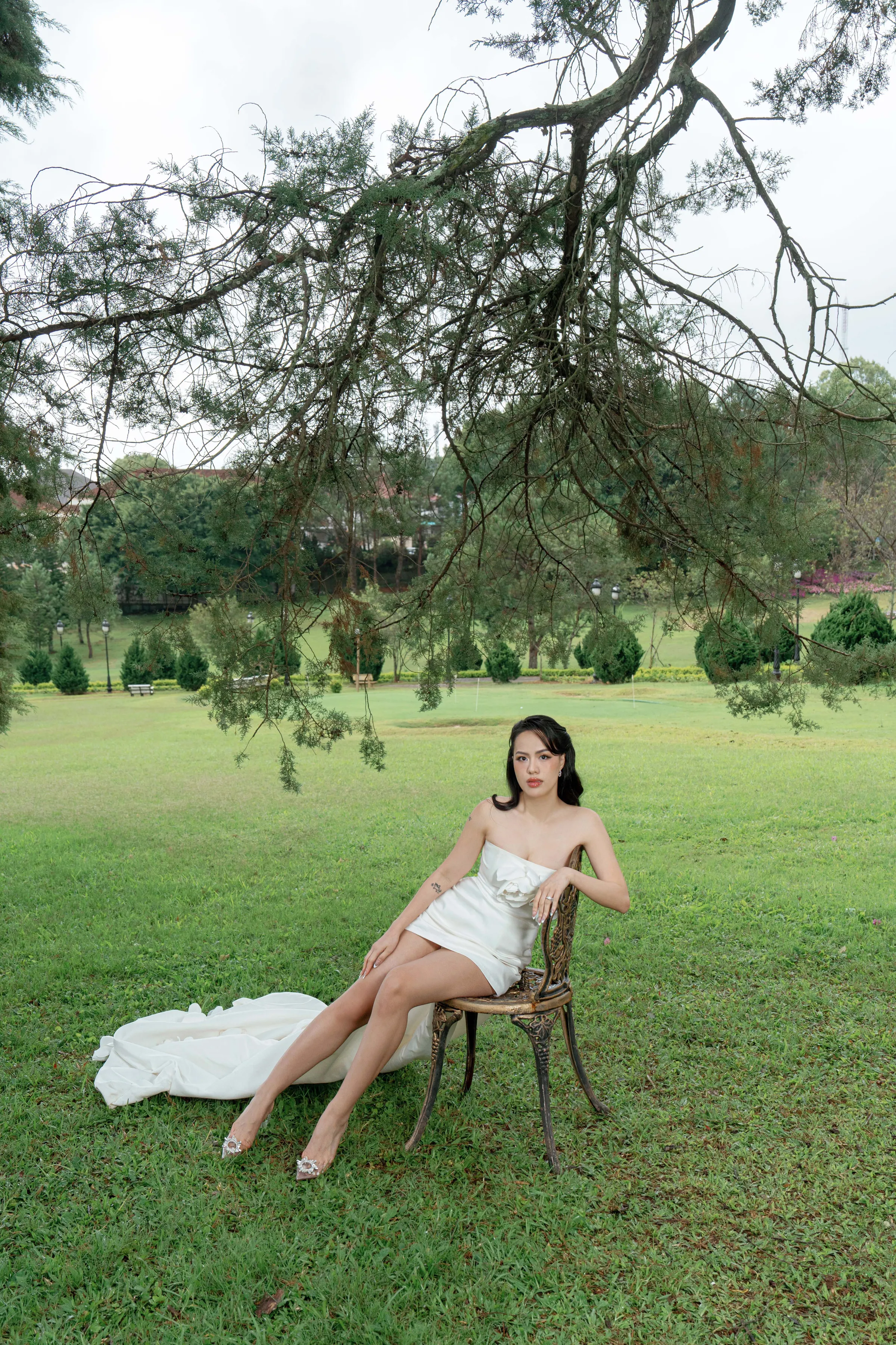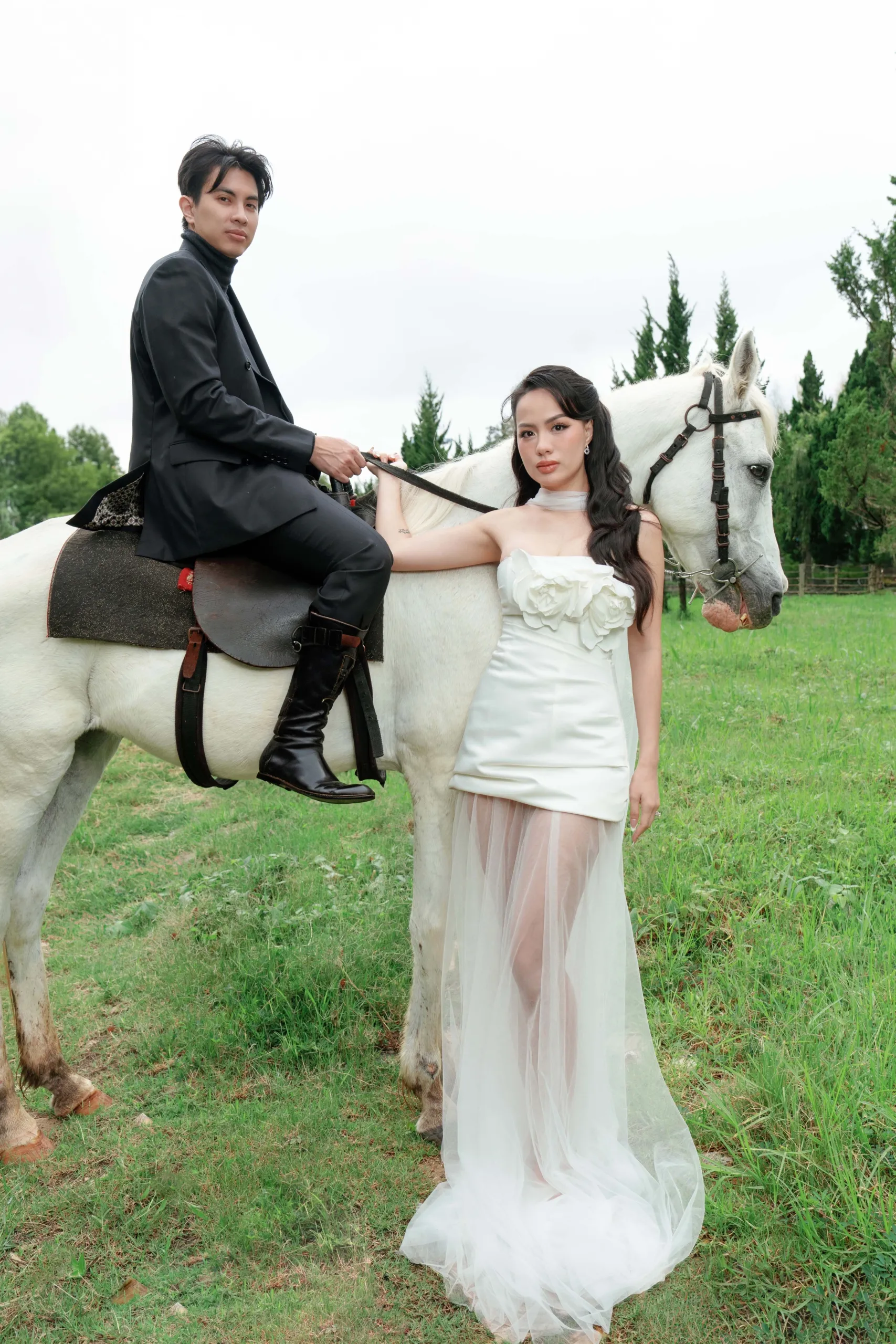 For bride Han Pham, elegance was never performative—it was understood and inherited. Her pre-wedding shoot with her fiancé captured this innate sensibility in a stunning editorial set at the Da Lat Palace Heritage Hotel, Vietnam—a French colonial icon whose weathered charm echoed their love for legacy and story.