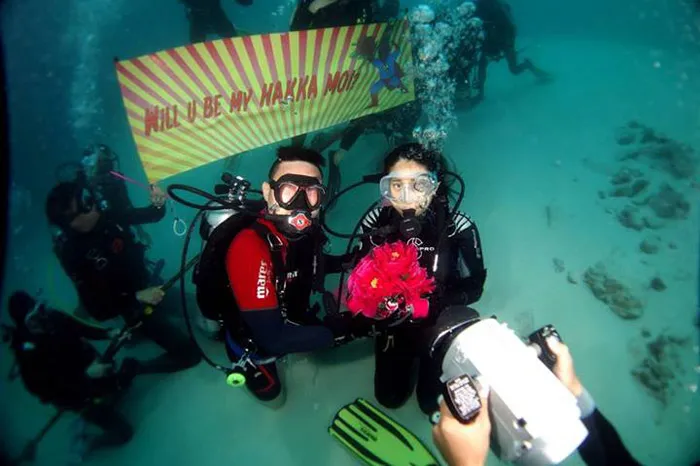 Those who scuba dive frequently say that the underwater world is a realm of its own. They love the quietness and that space that allows them to leave behind the worries of the world just for a moment. We’re sure you’ve heard of an underwater proposal, but those of you who haven’t actually seen one before must be wondering how the guy avoids losing that very small, very pricey rock in the ocean, and how the girl even says ‘yes’. This video is your answer.