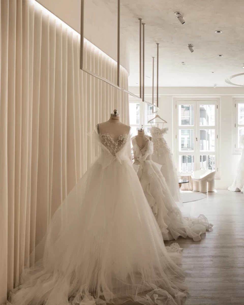 Since its founding in 2013, this bespoke bridal boutique has earned a reputation for bespoke and made-to-measure wedding or evening gowns with its modern takes on timeless styles, often flourished by contemporary details such as open backs or sheer, resplendent fabrics. With over 2000 dresses made to date and a personalised service, they are certainly doing right by their brides.