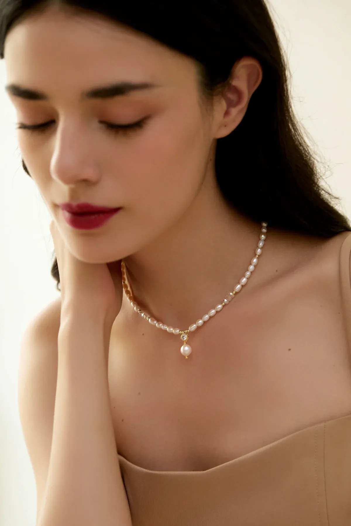 Credit: Skye, Lena Crystal Pearl Choker Necklace