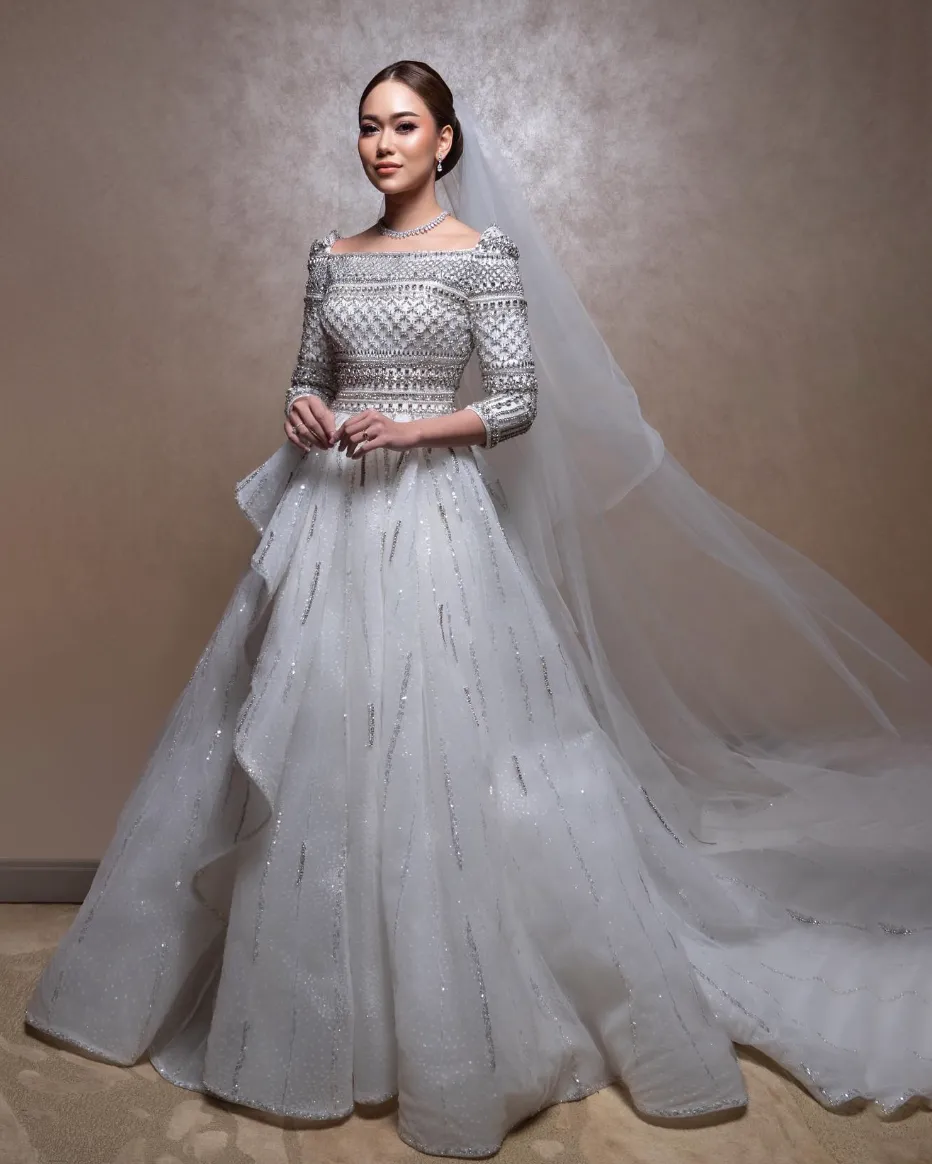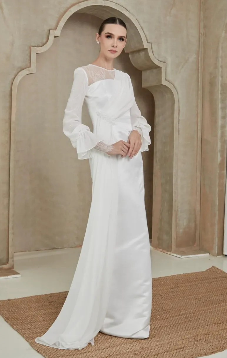 Planning a grand wedding and searching for an equally posh dress? That White Dress wedding gowns is where you can get it! Their modest wedding dress has a form-fitting bodice with puffy sleeves, intricate floral, sequinned top; focusing on the littlest details and of course, perfecting the ball gowns with lavish skirts with plenty of tulles, lace, and sparkles throughout! Furthermore, they have an exclusive Muslimah bridal collection – Suci, featuring modest silhouettes in Western style dresses.