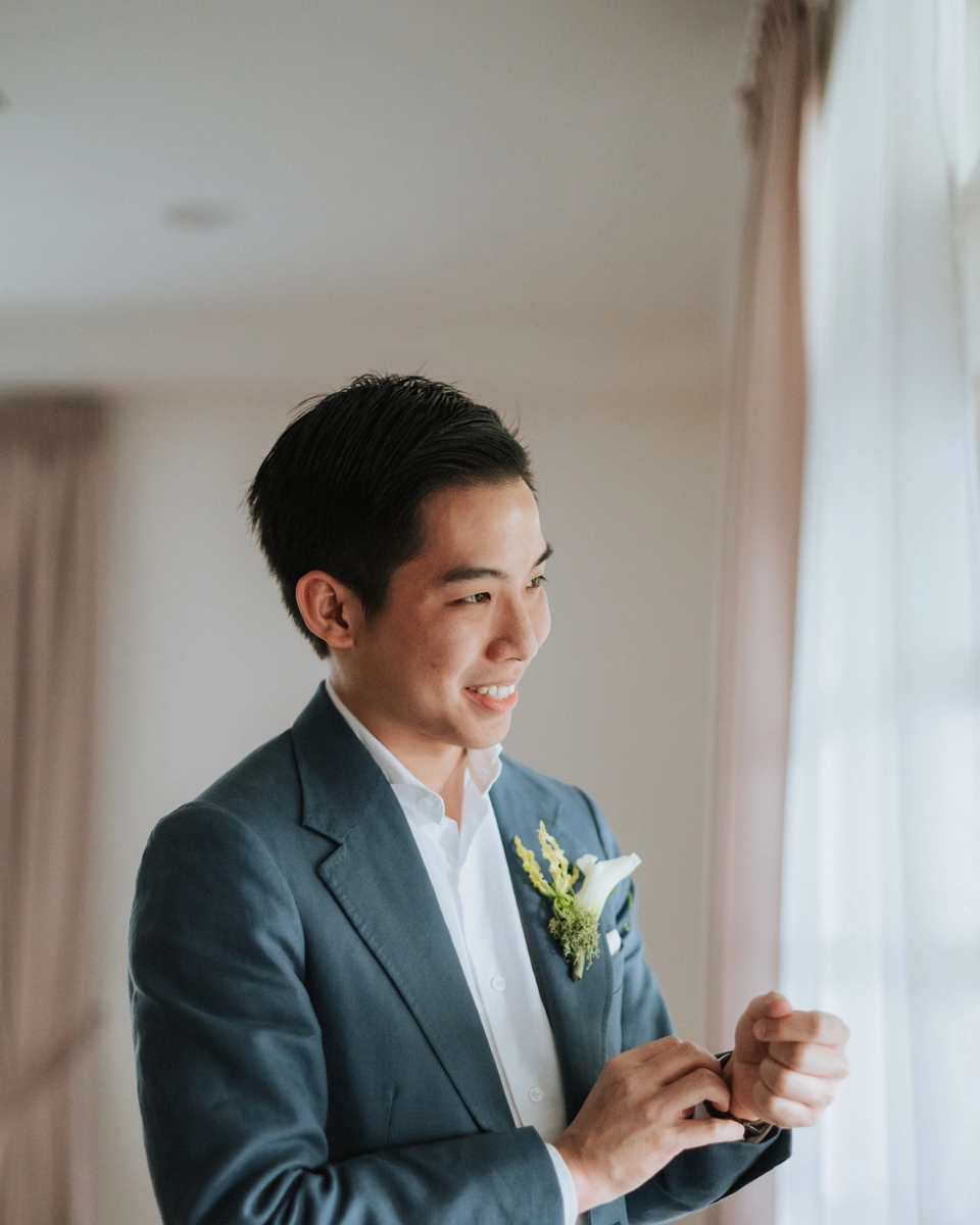 Batik shirts showcase intricate patterns and vibrant colors inspired by local traditions, adding a touch of cultural authenticity to the groom’s ensemble. The lightweight and breathable fabric of batik shirts ensures comfort in the heat. Pairing the batik shirt with tailored trousers completes the look. A casual outfit without sacrifice on formality, it’s the look we’d love to see more grooms choosing.