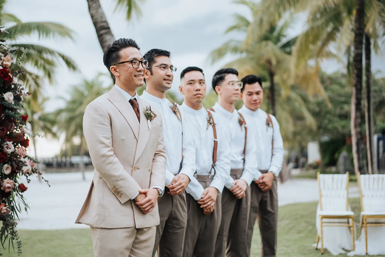 From traditional batik shirts to contemporary shirt and suspenders combinations, there are countless ways for grooms to look and feel their best in a tropical climate. Whether embracing cultural heritage or experimenting with modern trends, the key is to choose an outfit that reflects the groom’s personality, style, and the unique spirit of the occasion. By selecting the perfect ensemble, grooms can confidently walk down the aisle and celebrate their love in style under the tropical sun.