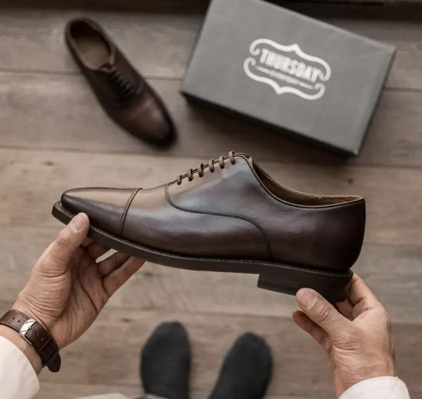 Firstly, let’s look at the leather, which is the main material men’s formal shoes are made of. You might have heard that full-grain leather is the best “grade of leather,” or that genuine leather is one of the worst. That is, however, a myth. There is no universal grading system for leather quality. Full-grain leather is simply leather that hasn’t had its outermost layer treated or altered, and genuine leather is just real leather. Some brands with low-quality leather might emphasise “full-grain” in their marketing, while others with stellar leather simply call theirs genuine. Be careful not to fall into this trap!