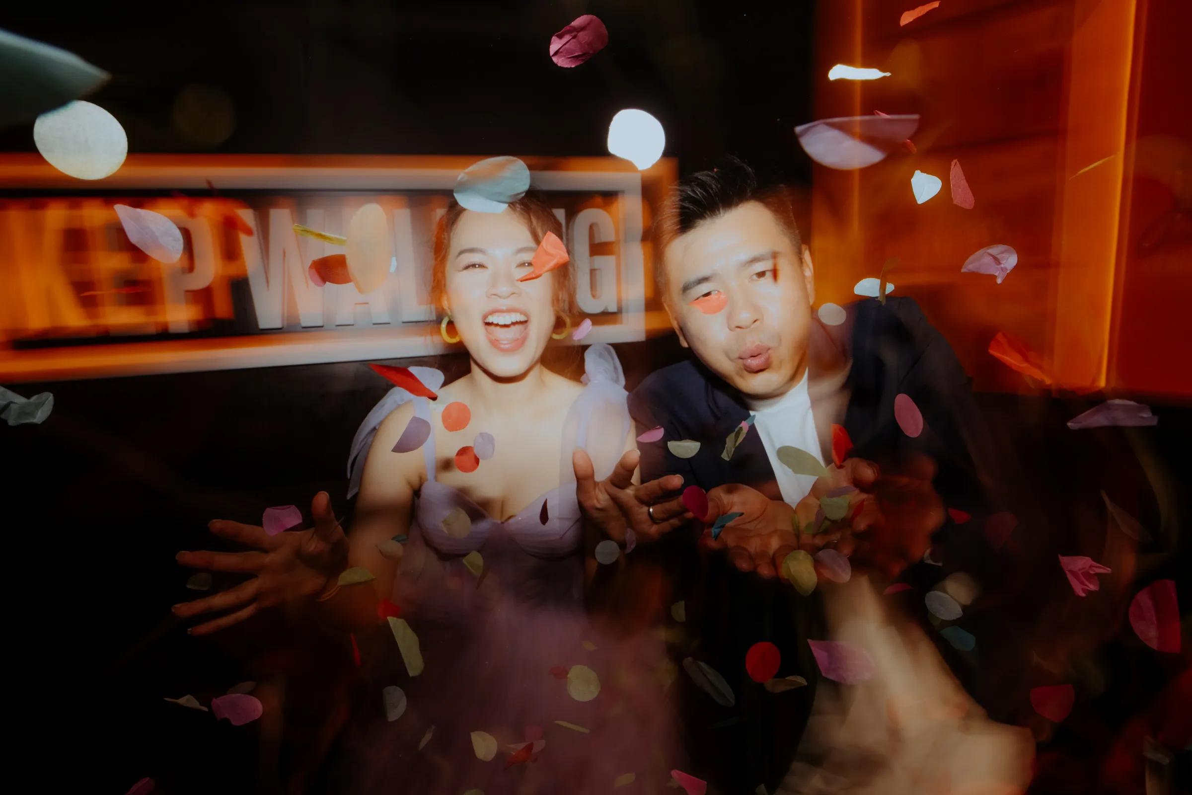 Modern editorial wedding photography is bold and contemporary, pushing the boundaries of traditional wedding imagery. This style may employ direct flash, creating a dramatic, high-contrast look that feels both edgy and sophisticated. Alternative details, such as unconventional angles and creative compositions, add a unique flair to the shots. The result is a striking visual story that feels fresh and avant-garde, perfect for couples who want their wedding photos to reflect their modern, trendsetting style.