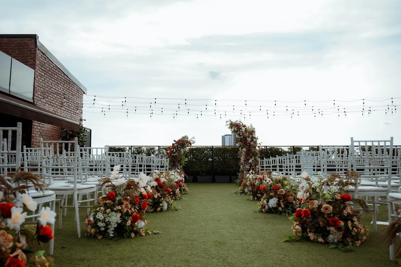 Glasshouse Klang is a modern, rustic rooftop event venue tucked away in the heart of Klang. Designed with a seamless blend of indoor and outdoor spaces, its main glasshouse hall comfortably seats up to 120 guests, with full-height glass doors that open directly onto an adjoining lawn. The outdoor lawn accommodates up to 180 guests and carries a relaxed garden-style ambiance—especially cosy and inviting as dusk falls and hanging backyard lights begin to glow. On-site highlights include a dedicated bridal dressing room, ample parking, and thoughtfully curated photo corners for memorable moments. Its rooftop setting lends the venue a charming, hole-in-the-wall feel, making it an unexpected and delightful discovery for arriving guests.
