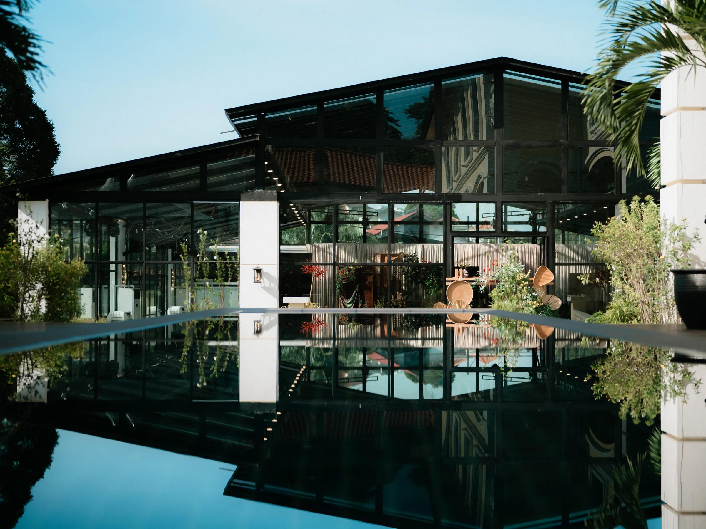 The Ampang Glasshouse is a 3 story building that functions as an event space. There are various spaces for guest to explore and mingle in. The rooftop glasshouse and has an intimate capacity of 64 seated guest that leads to an outdoor poolside lawn. It houses an emaculately manicured garden and is beautifully suited to smaller ceremonies.