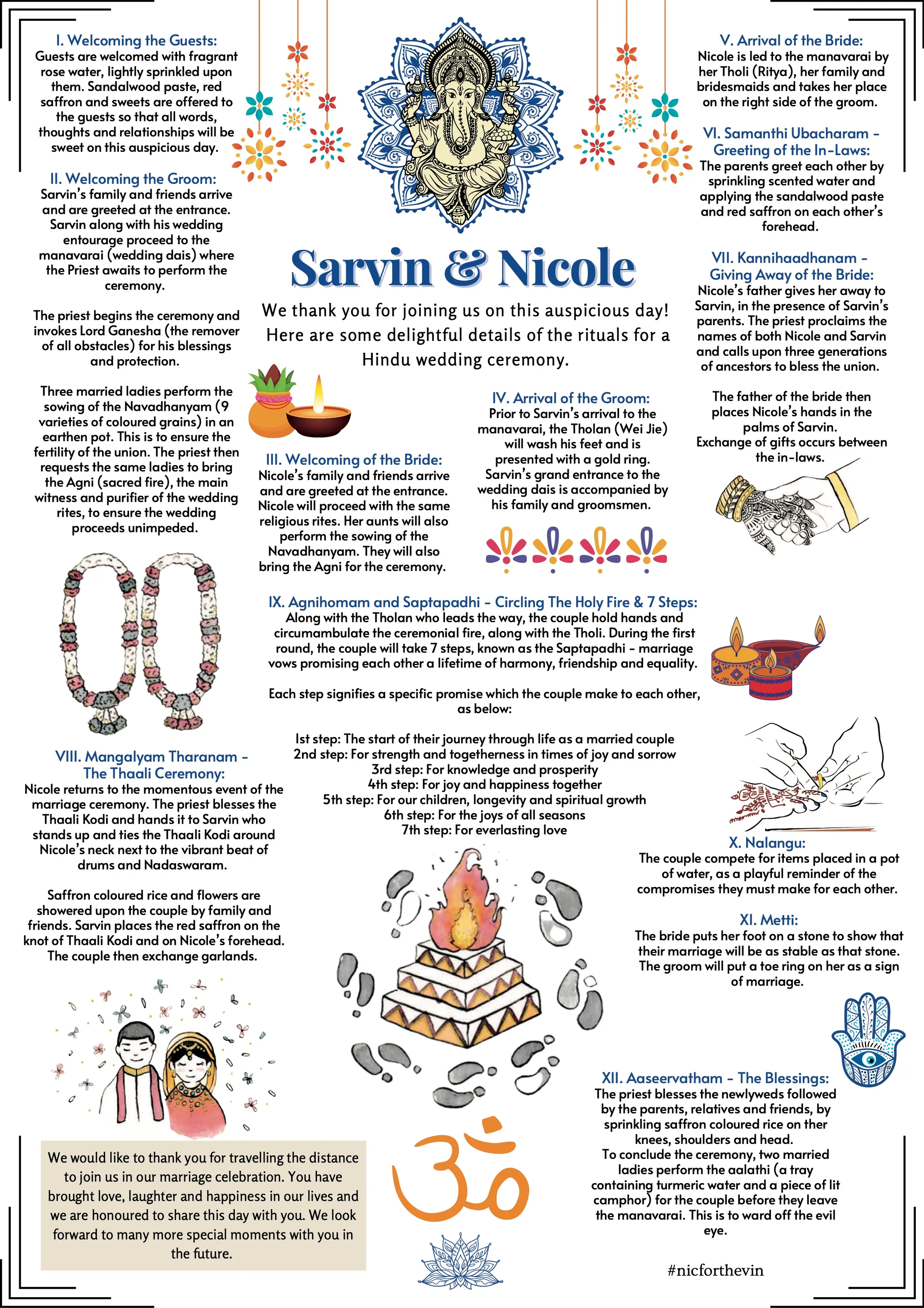 Hindu weddings, also known as kalyanam in Tamil, are traditionally vibrant affairs that bustle with life and vigour: wedding parties are often regally adorned in gleaming traditional attire, and sacred rituals carried out faithfully and respectfully, under the gazes of friends and family amidst canopies of extravagant décor. The order of events is not fixed and may vary by ethnicity and region of origin.