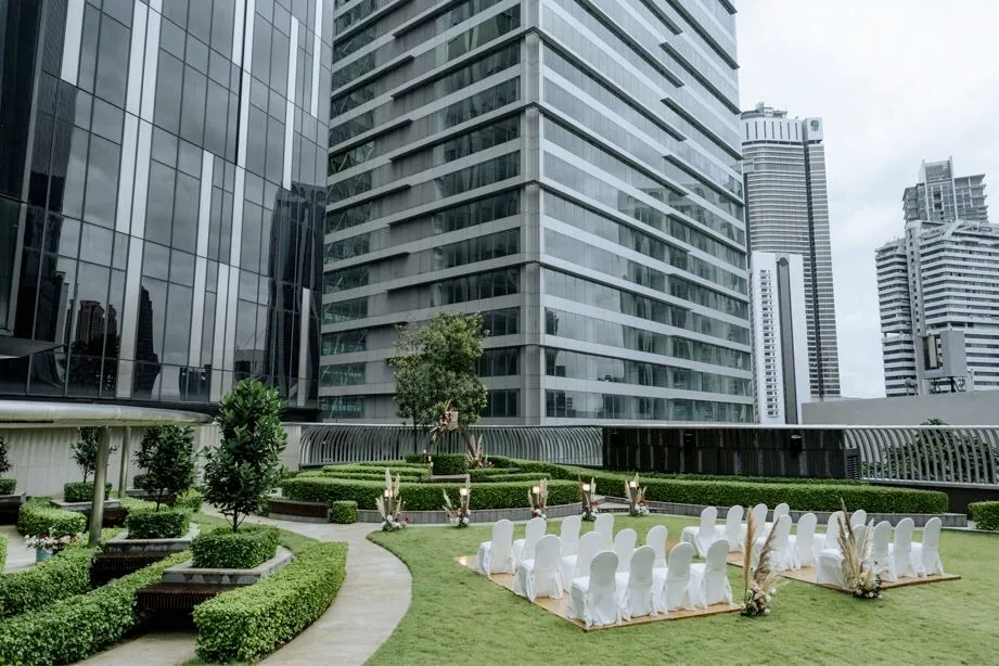 Nestled in the heart of the city of Kuala Lumpur lies EQ Hotel. There is a well manicured garden that can accommodate 60-70 pax for the ceremony. For usage of the garden, a fee of RM 10,000 is required to secure this coveted location and it includes banquet chairs and light refreshments (including EQ signature coolers).