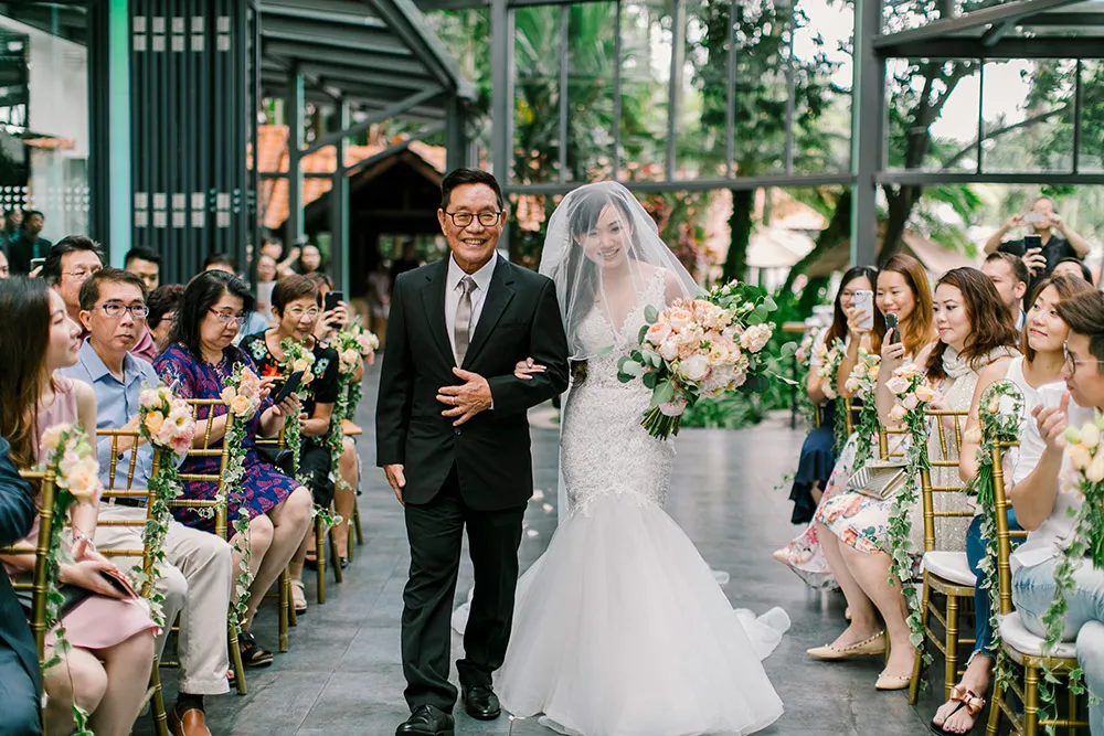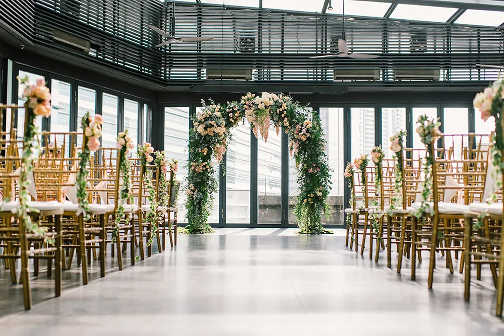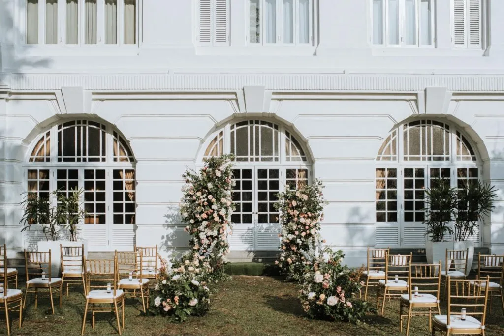 Alternatively, one can have their ceremony held in the comfort of the indoors at The Conservatory. Despite being indoors, this location makes for good photos thanks to its floor-to-height windows that let the natural light in. Banquet chairs are available, whereas chiavari chairs as seen in the pictures above have to be sourced by the couple themselves. Dining can be held at the diamond ballroom and can be assessed with a minimum booking of 30 tables.