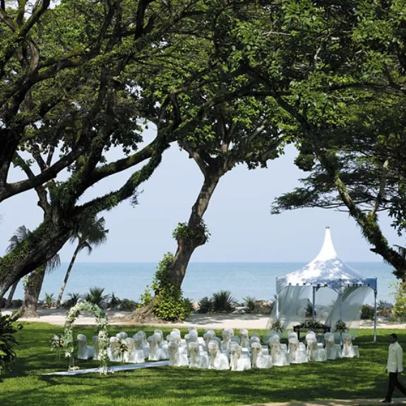 Rich in character and boutique resort charm, Palm Garden Hotel embraces Malaysian identity with interiors that blend natural textures and local craft. With just over 150 rooms, the resort is available for exclusive buyout, allowing you to customise the hotel’s name and turn it into your private wedding haven.