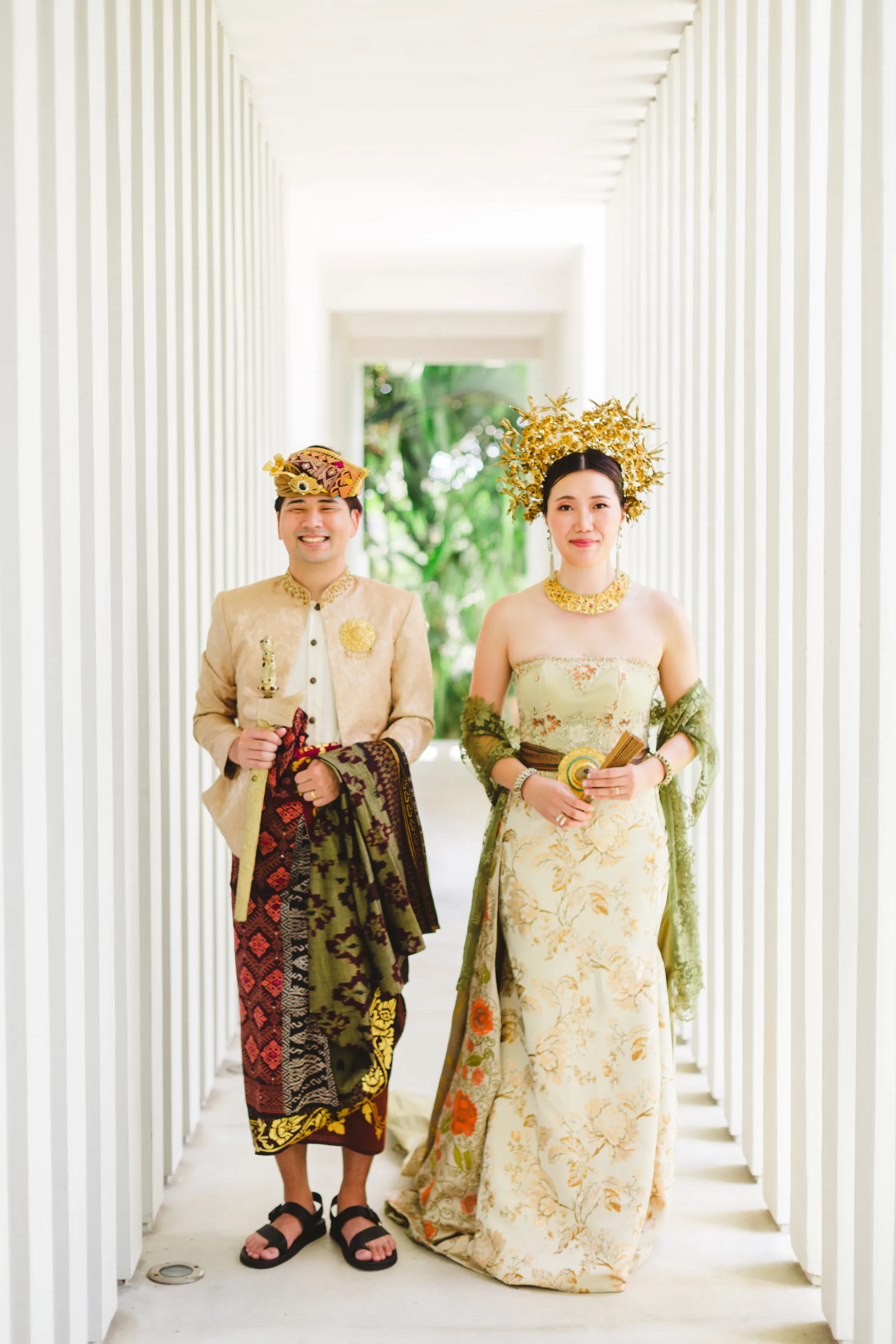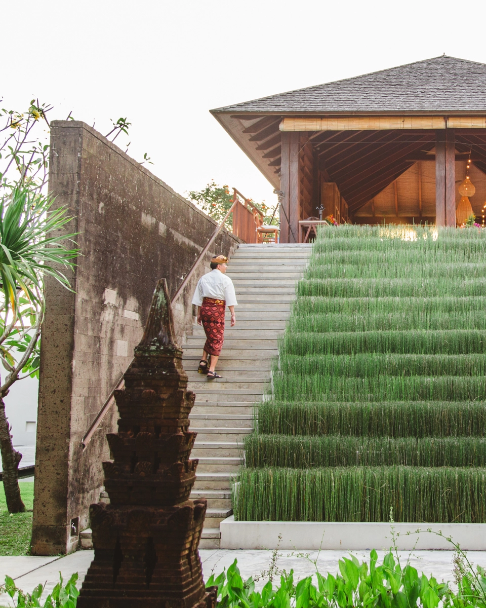 For couples who prefer to wear modern wedding attire while still embracing the island’s vibe, having your waiters dressed in traditional Balinese clothing is a fantastic option. This maintains the cultural atmosphere and adds an authentic touch to your celebration without compromising on your desired wedding look.