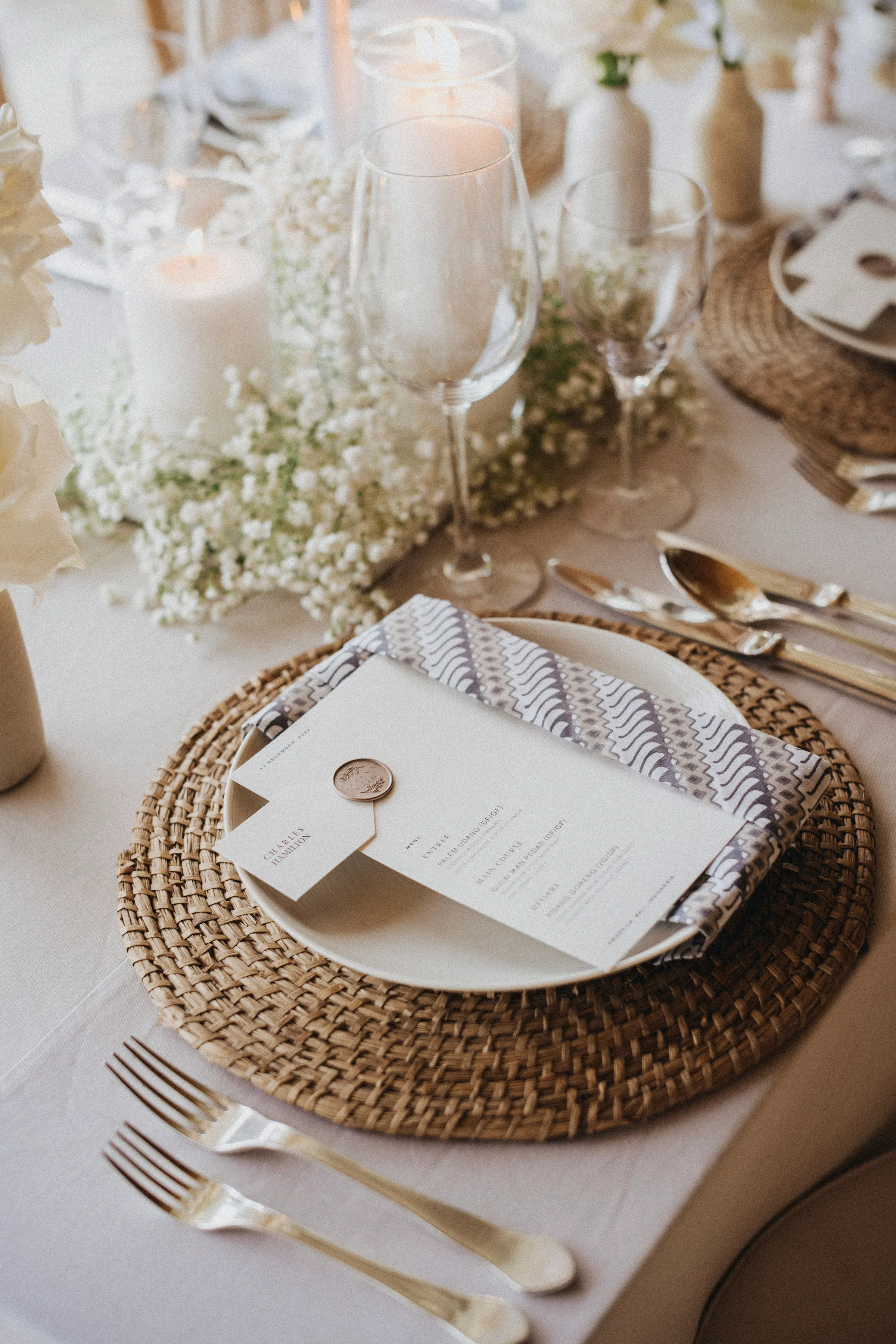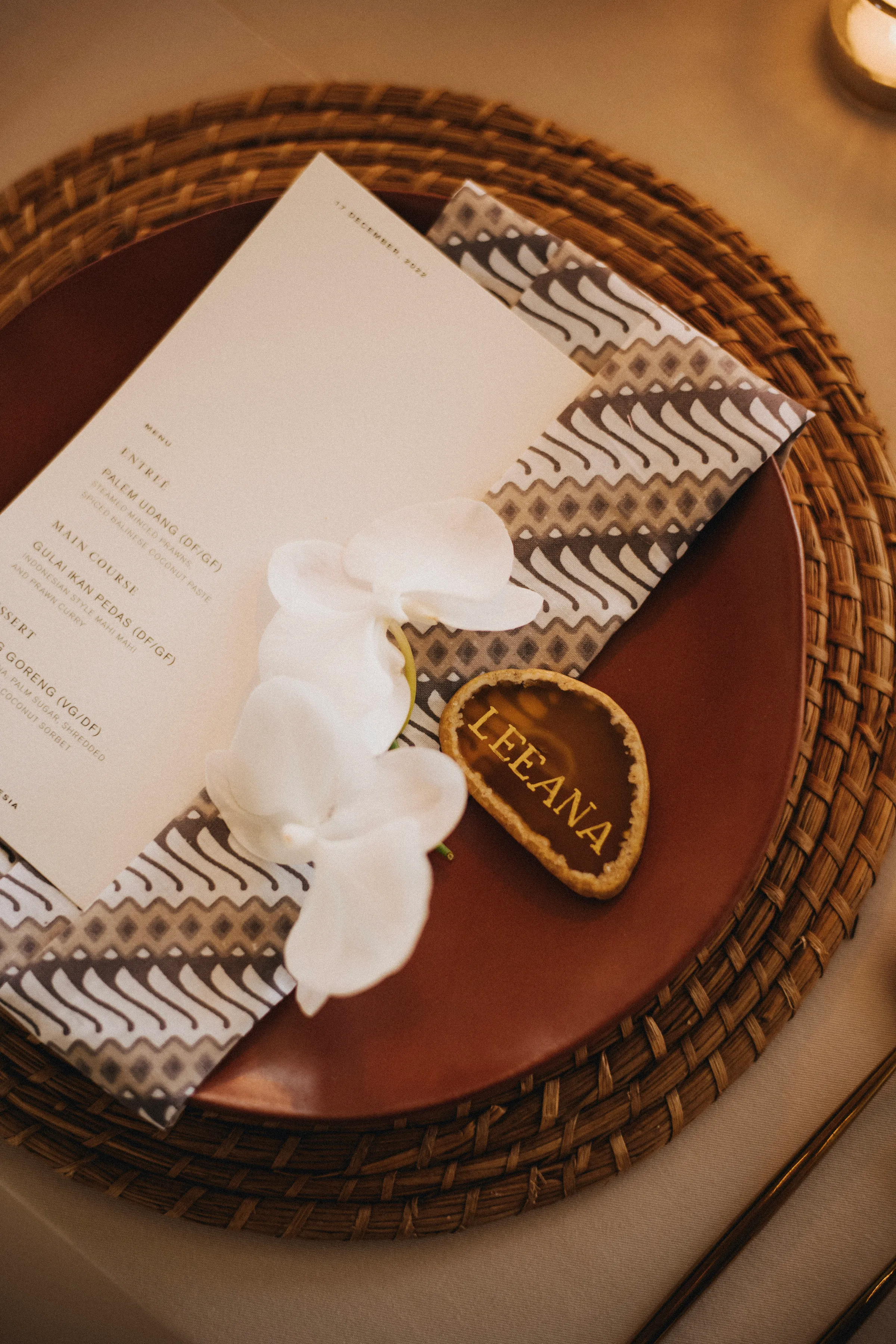 Delight your guests with the flavours of Bali by including traditional dishes in your wedding menu. Balinese cuisine, with its aromatic spices and rich flavors, offers a culinary journey that complements the cultural experience. Consider serving favorites like satay, Bebek Betutu (roast duck), and various Balinese desserts to give your guests a taste of local tradition. A roasted pig on a spitfire, known as Babi Guling, is not only a delicious treat but also adds a festive and visually striking element to your celebration, enhancing the communal and celebratory atmosphere.