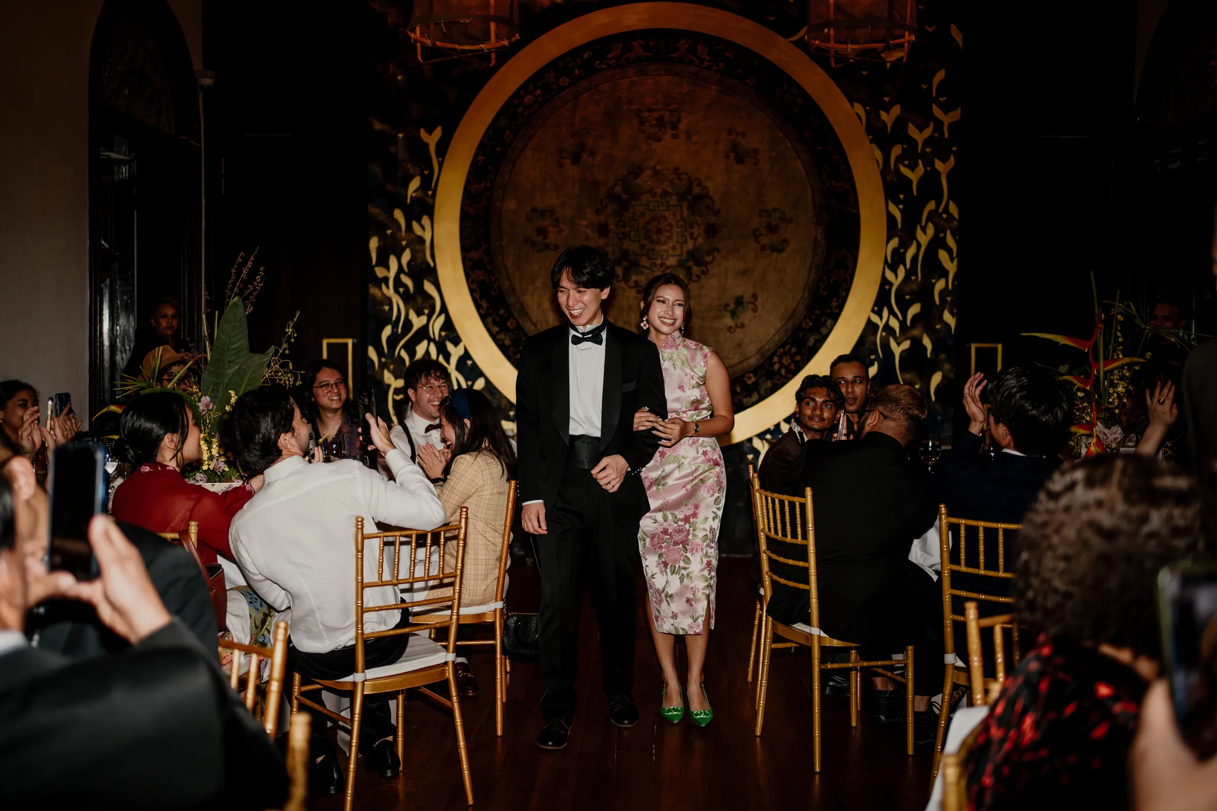 Incorporate music, dance, or performances from both traditions to keep everyone engaged. At the tropical wedding in Sentosa Janda Baik (above), guests joined in a lively ‘joget lambak’ session — a joyful moment of shared celebration that reflected the communal spirit of both families.