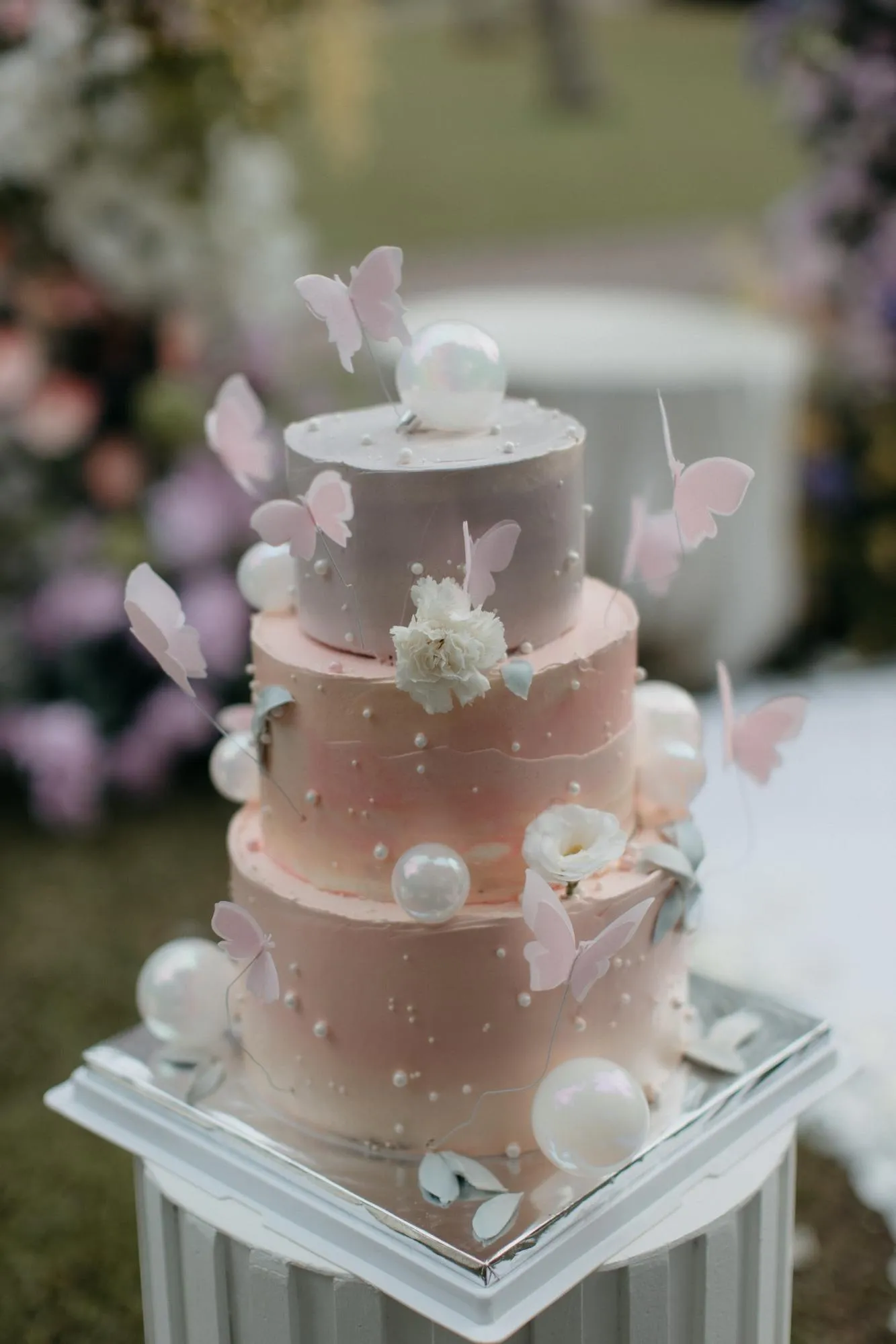 Apart from having the aesthetics on point, make sure your baker knows the wedding will be held outdoors. Depending on where you’re celebrating, ask your baker for advice. Fondant tend to weather the heat better, but even fondant sweat in the heat and colours may run. As for buttercream, your baker will likely tweak his or her recipe to include stabilisers, such as shortening or starch. At the same time, opt for sturdy decorations.