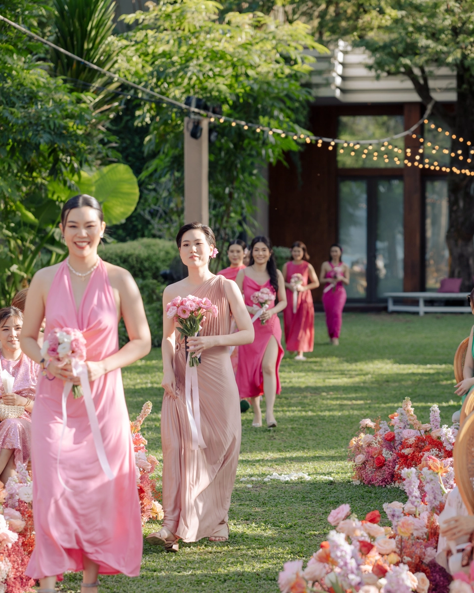 For taller bridesmaids, it’s a good idea to pack a pair of flats as an option. This way, you can decide on the appropriate footwear according to how the entire group of bridesmaids looks together, ensuring a cohesive and balanced appearance for all the bridesmaids.