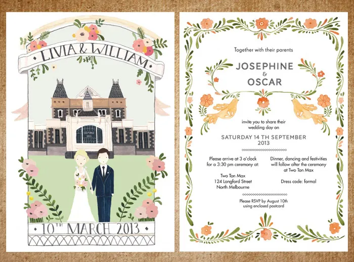 Life’s loveliest celebration deserves pretty paper goods, and it doesn’t get more personalised than illustrated wedding invitations. Here is a roundup of our favourite illustrators, each with their own distinctive style.
