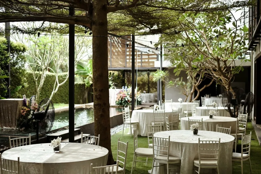 For garden ceremonies, the lush outdoor space seats 50 guests comfortably, with rental beginning at RM4,800, covering 4-hour usage, a PA system, 40 foldable garden chairs, and an onsite coordination team. To complete the celebration, in-house buffet catering services are also available.