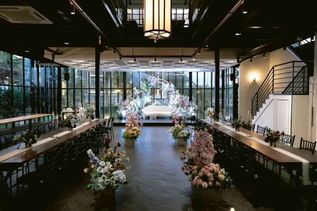 Formerly known as ROMemories, The Fleurs 81/2 offers an intimate and stylish setting for weddings. This venue features a makeshift tent reception area that accommodates up to 230 guests, providing a warm and inviting atmosphere. Space rental starts at RM6,800 for 4 hours, including furniture, a coordination crew, a projector, a PA sound system, and basic décor.