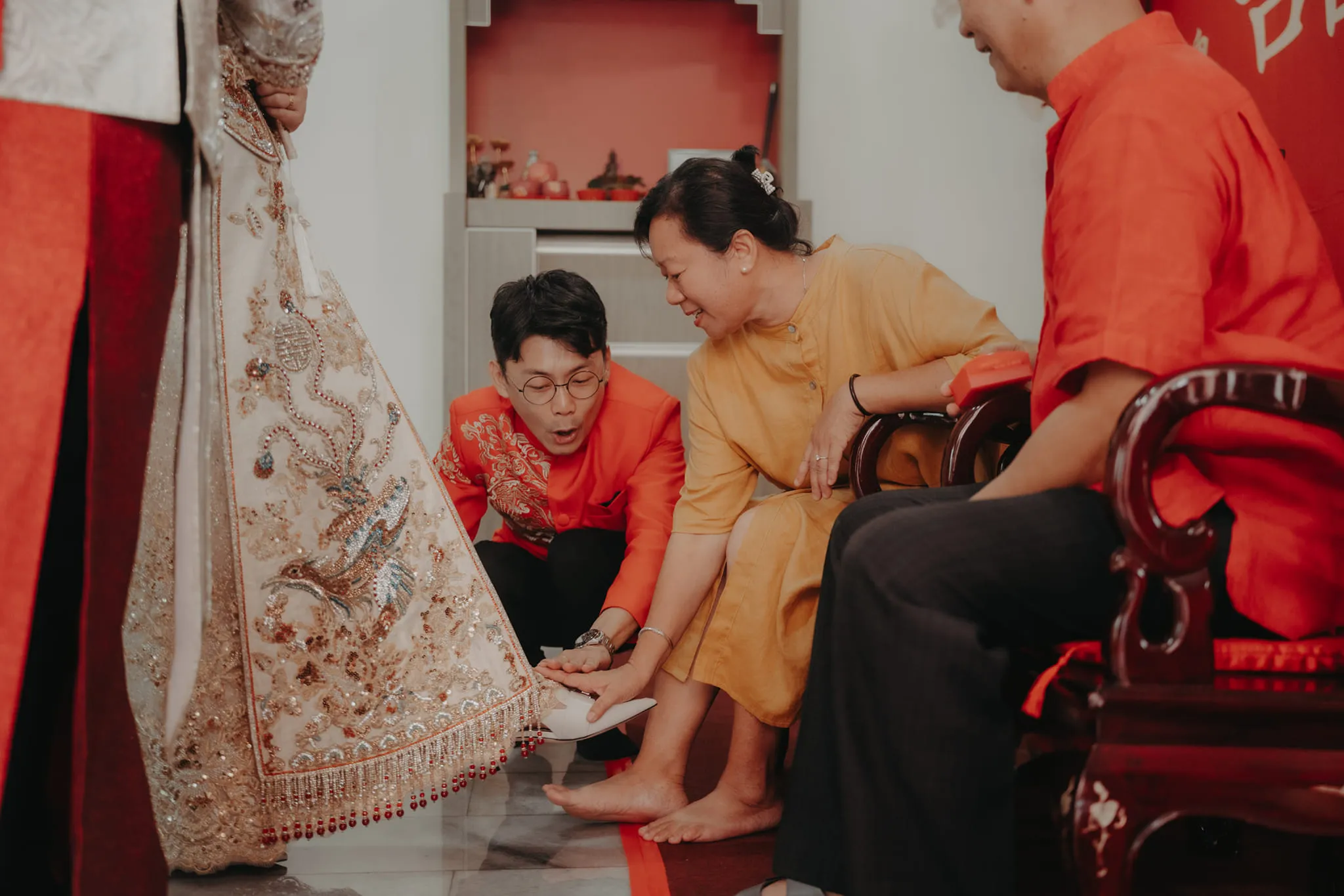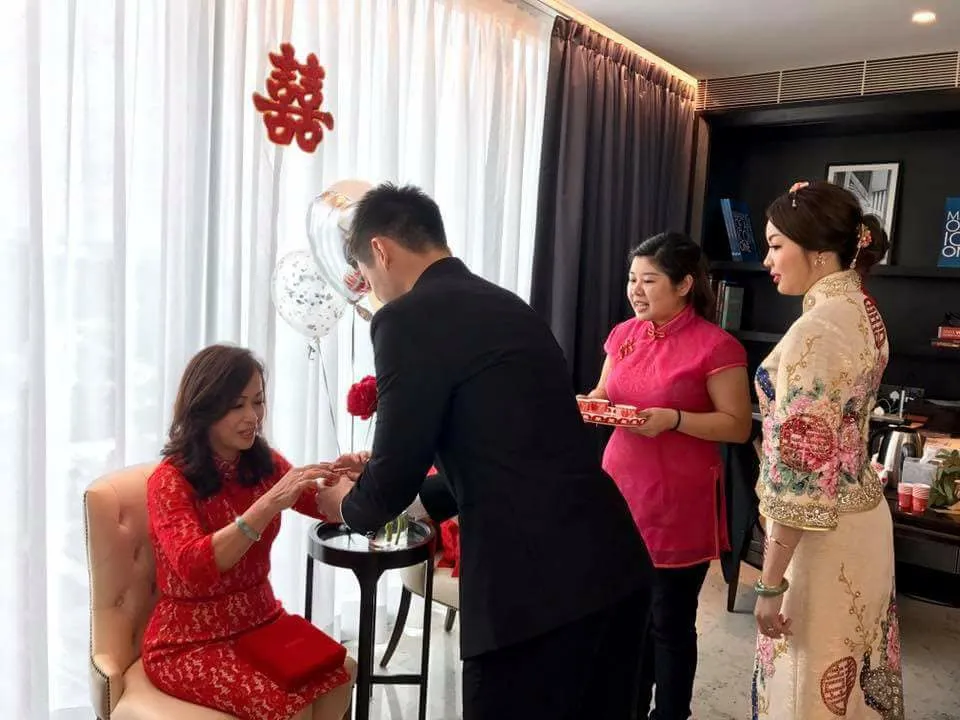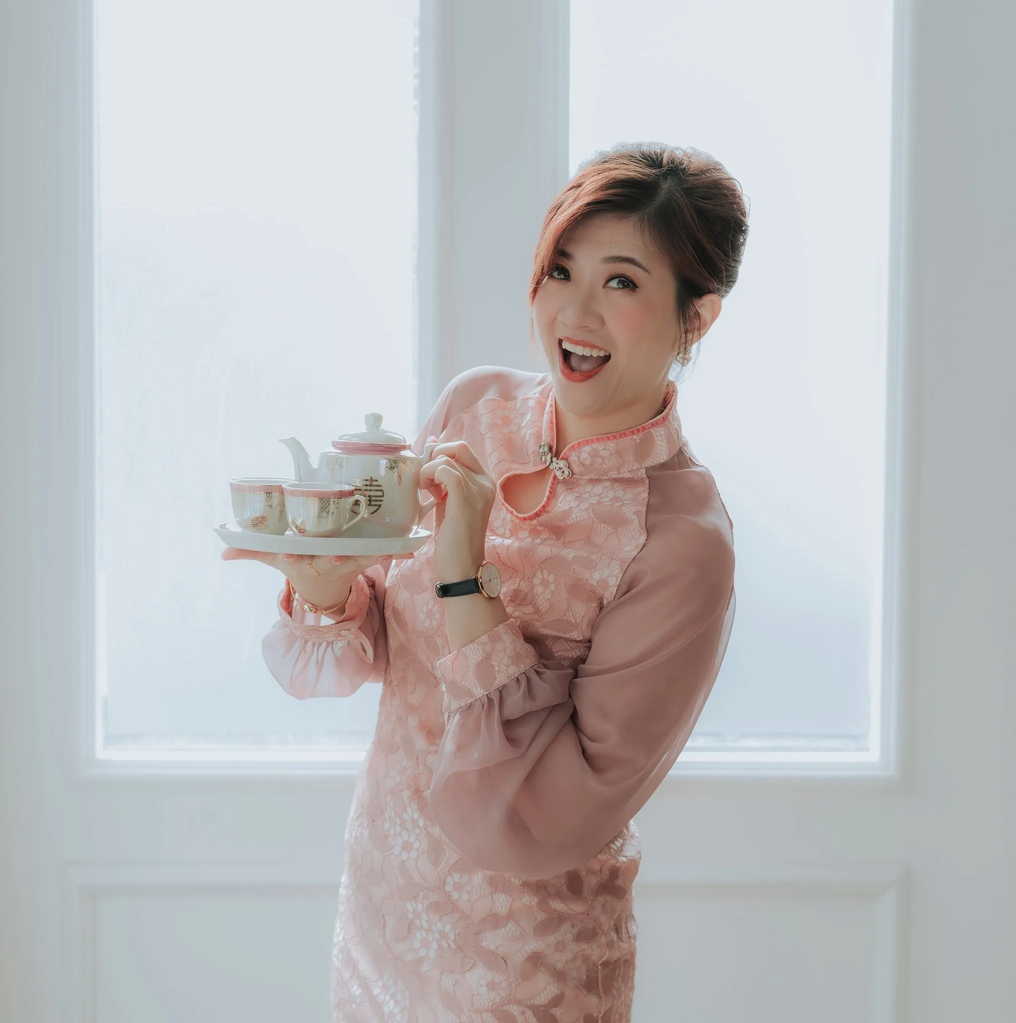 Cecilia, a professional Master of Tea Ceremony, goes by the name Daikum jie in her field. She specialises in assisting her clients with performing significant wedding rituals, infusing them with a modern twist. Fluent in Cantonese, Mandarin, and even English if needed, Cecilia ensures that the ceremony is conducted in the most auspicious manner.