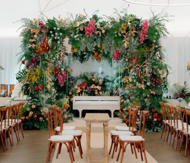 Munstara is making a name for themselves as a wedding decorator who has a flair for greenery and tropical plant décor. Their signature style is lavish and opulent, with abundant vegetation that creates a stunning and memorable atmosphere. They bring in vibrant colours to enhance the details of their setups, making their work stand out and leaving a lasting impression on guests. Couples who want to infuse their wedding with bold and bright colours should consider working with Munstara as they can transform any venue into a vibrant and unforgettable space.