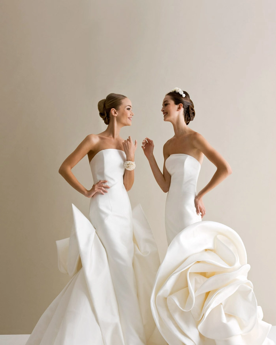 Every once in a while, we stumble upon the work of a great designer, and we feel it would be ridiculously selfish of us to keep it all to ourselves. Italian designer Antonio Riva’s work is a stroke of genius. With these elegant dresses that were created with lavish Mikado silk and organza, the intertwining fabrics are already an art in themselves, and the train, floral details and bows leave us breathless! Unfortunately, the dresses are only available in Italy, Russia and Japan – at least for now.