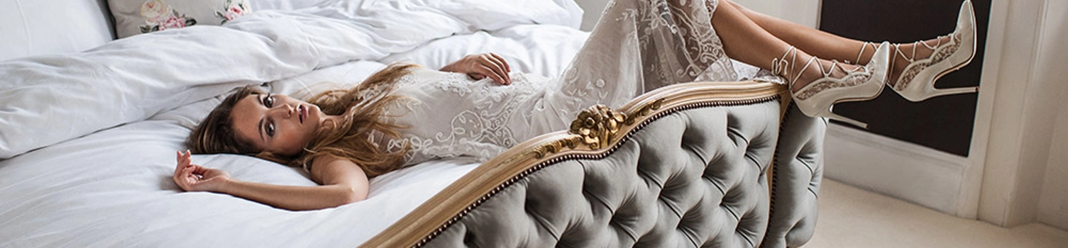 It’s not just about the gowns when it comes to bridal fashion. Freya Rose recently debuted her “Violet Grey” shoe collection, which presents a sophisticated and classic option for adding “something blue” to your wedding attire, using beautiful blue Swarovski trims. Inspired by a fusion of opulence and the frivolity of the Edwardian and Bohemian eras, the collection features five styles running from a classic ankle strap sandal to a sophisticated lace-up point, and even a modern take on the vintage lace bootie!