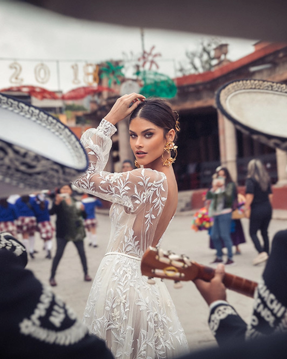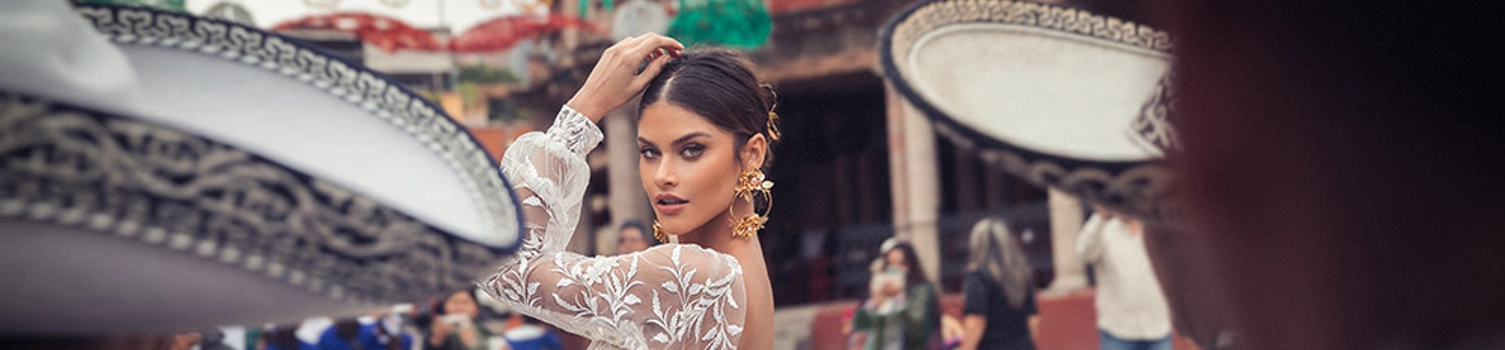 Inspired by the rich colours and vibrant energy of San Miguel de Allende, Mexico, Julie Vino’s 2019 bridal collection is exotic, exciting and sexy! Featuring fabrics that have been specially designed for this collection, combined with chiffon, silk and other flowing fabrics, the gowns offer something for every bride, from symmetric to non-symmetric silhouettes, from clean to embodied shapes, from matte to glossy textures. Beautiful!