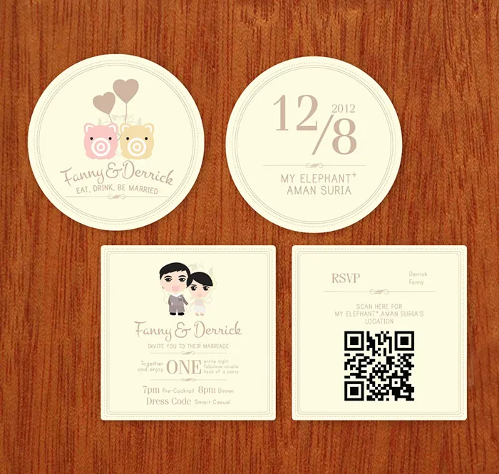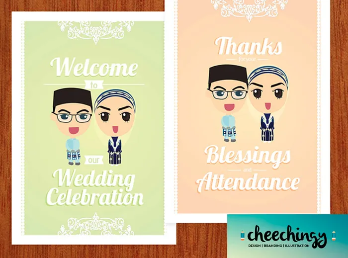 Chee Ching is a designer and illustrator who does customised wedding invitations and wedding montages and videos. She specialises in drawing characters for use in both videos and printed goods. Perfect for couples looking for something a little more on the fun side.