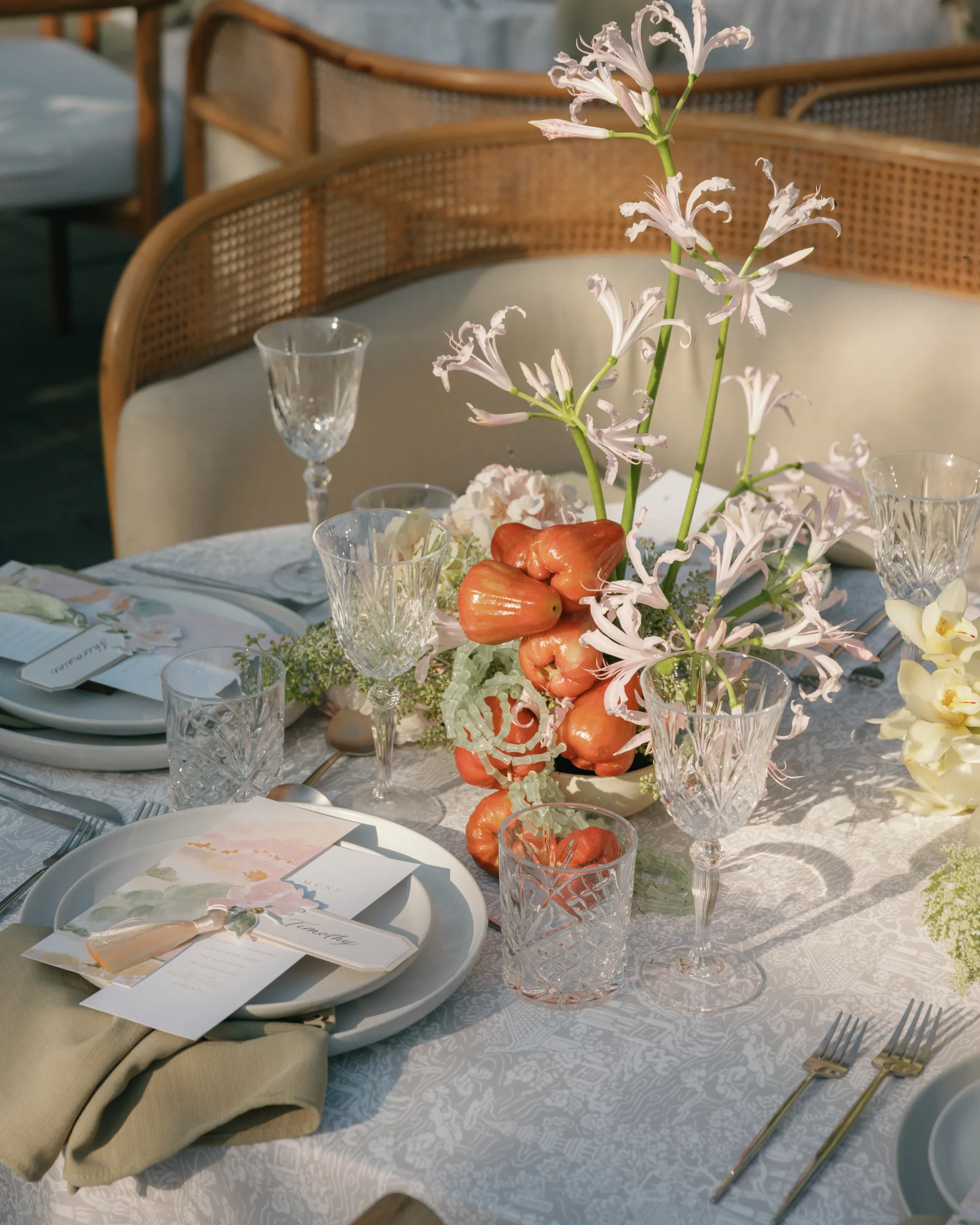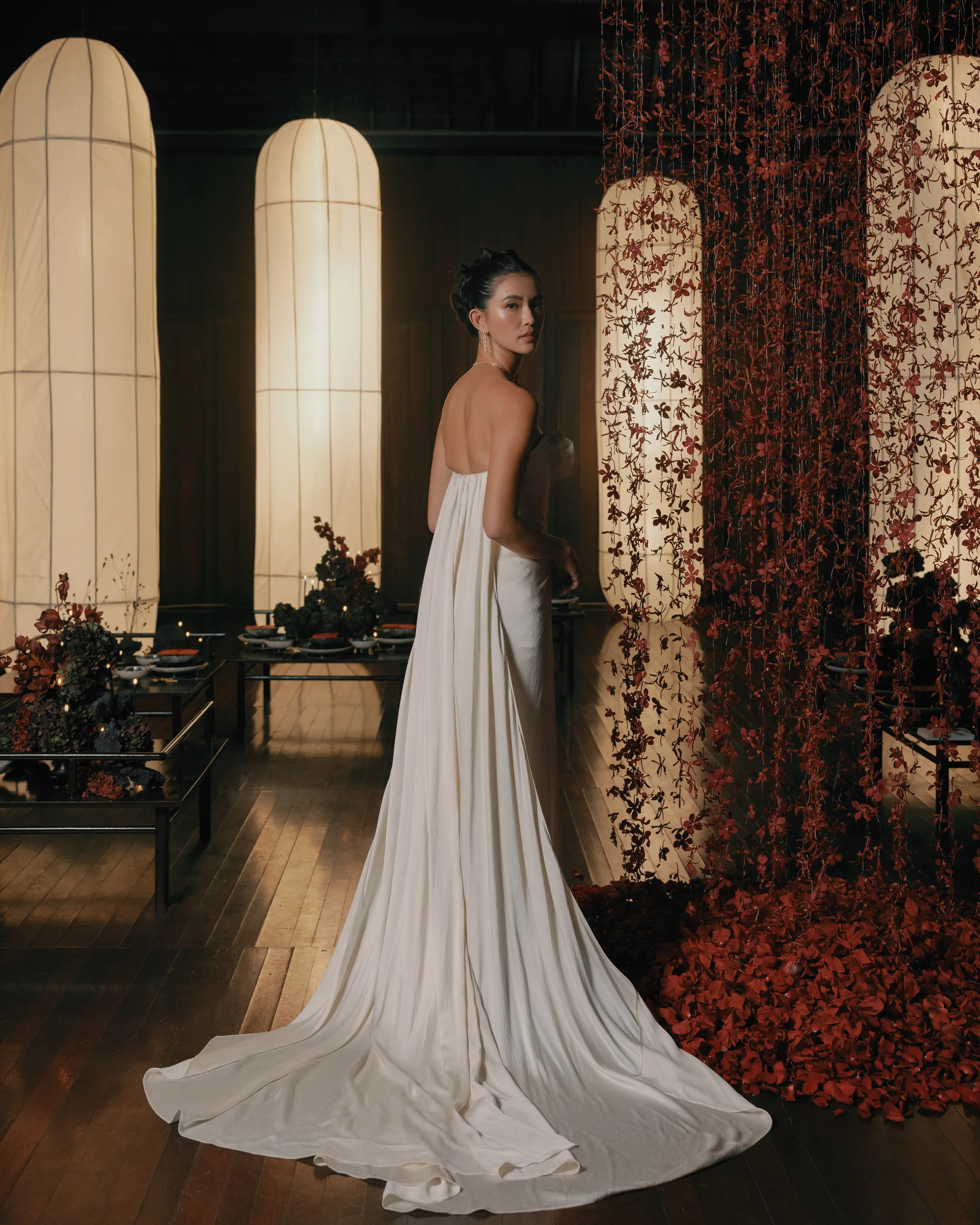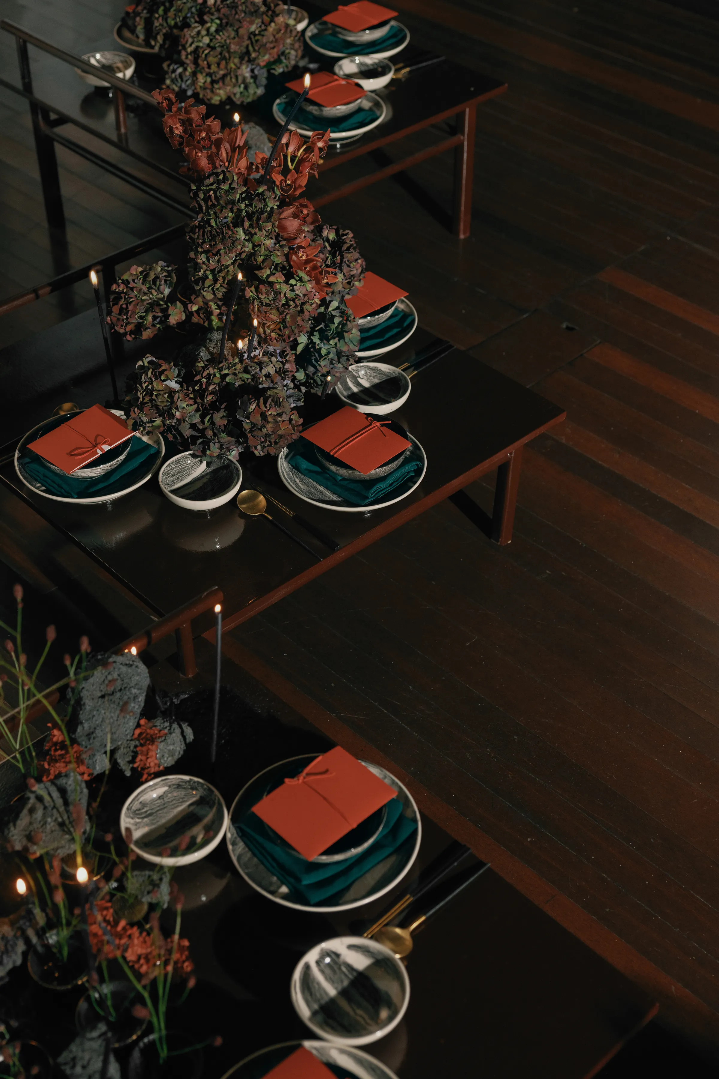 As the sun dips over the ocean, Whispers of the Stage captures a spiritual exchange of vows, where dancers interpret the invisible threads of ancestry and emotion through fluid movement—turning silence into ritual. The experience culminates in Lunar Banquet, a moody, candlelit reception designed as a sensory masterpiece. Every detail—from curated tableware to shadow play—creates an atmosphere more akin to a gallery installation than a traditional dinner.