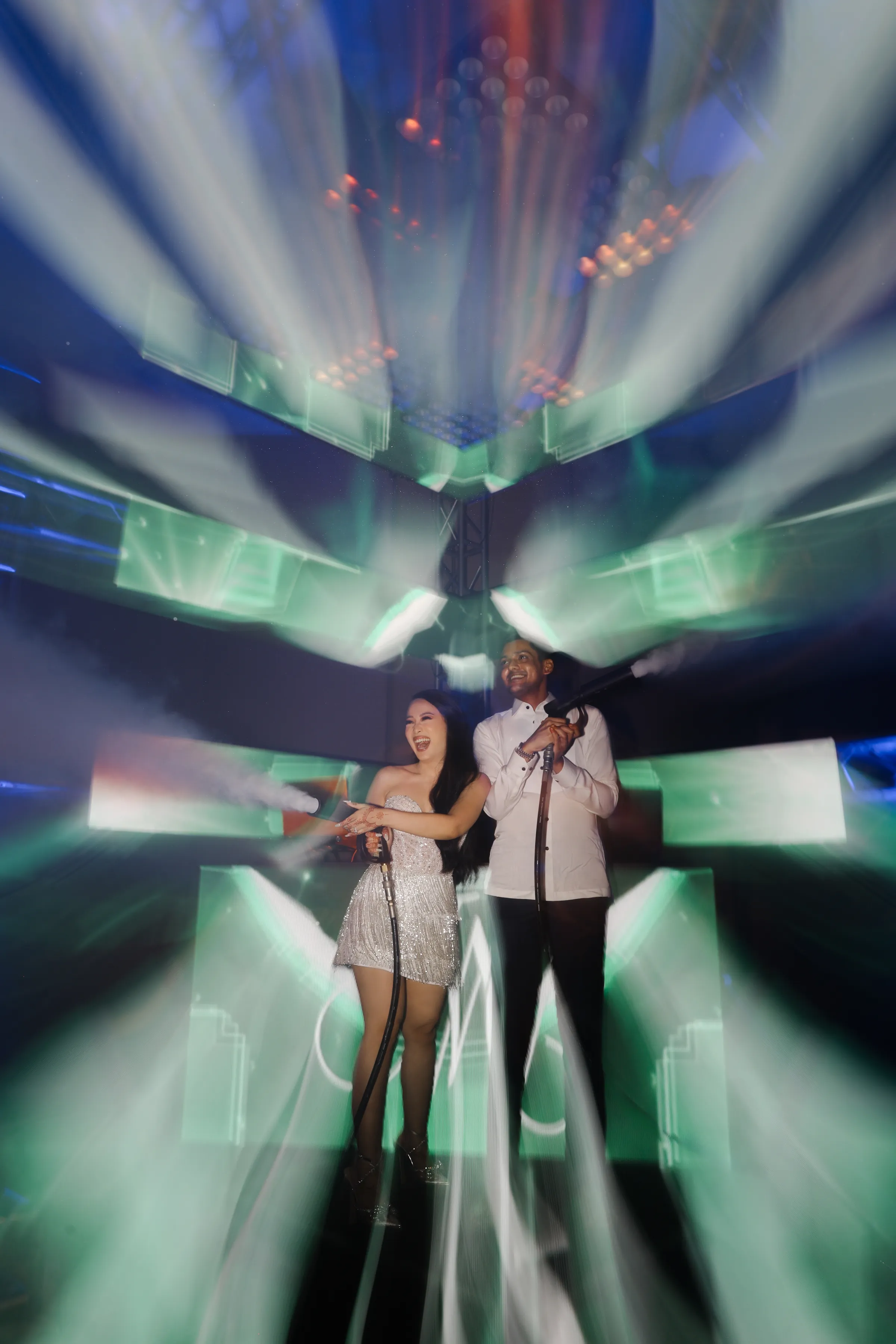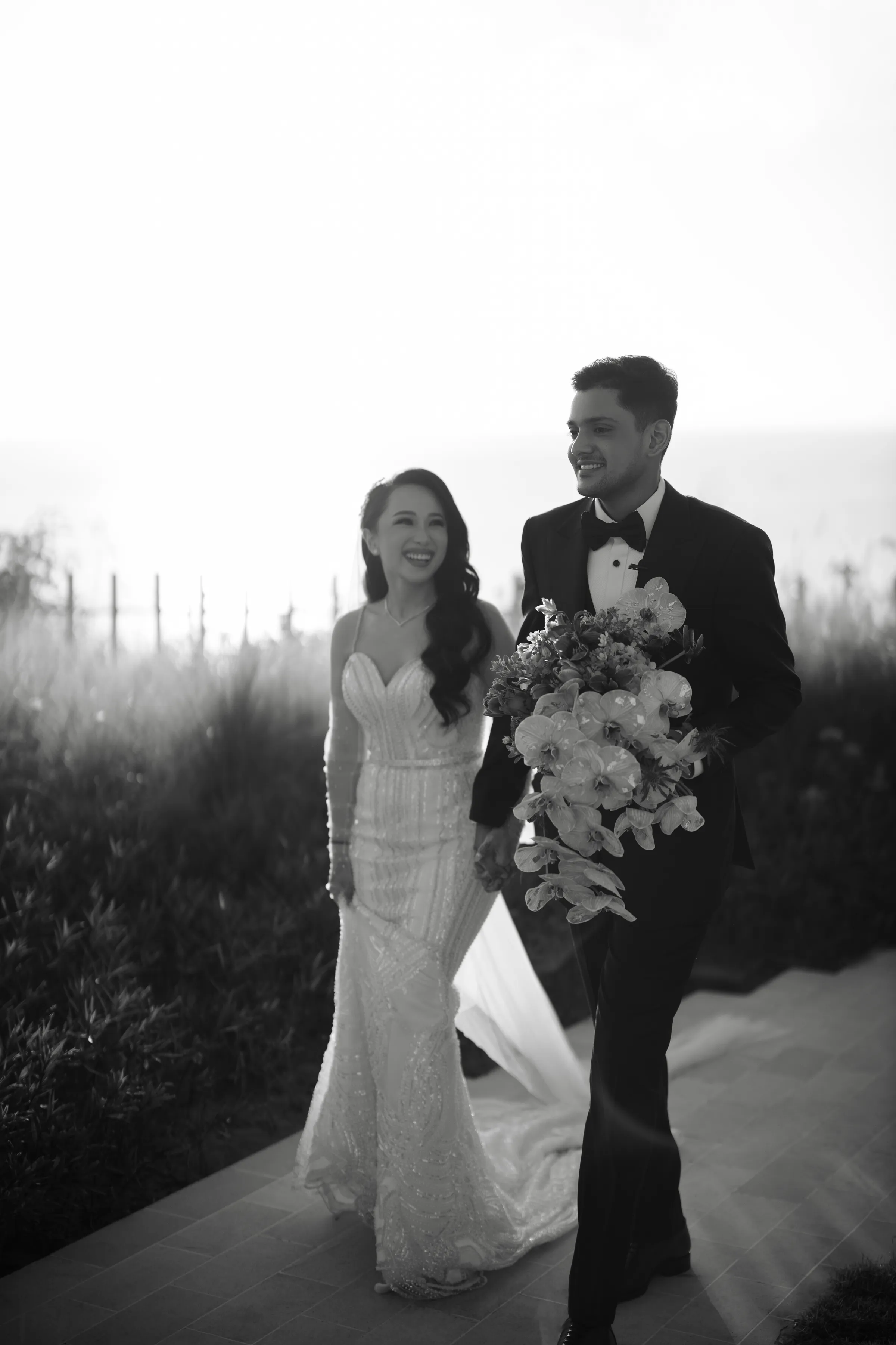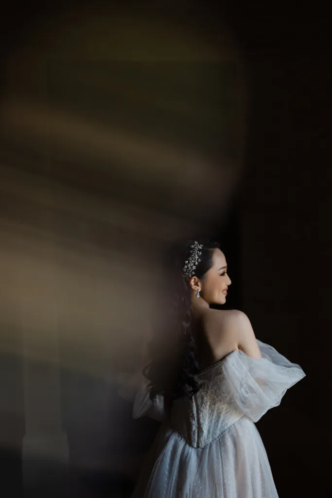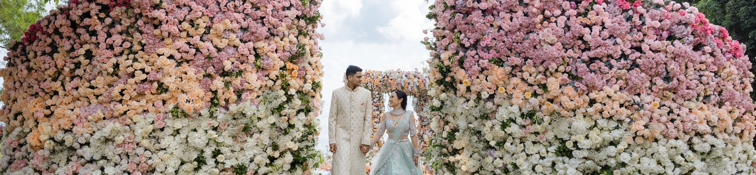 The morning air at AYANA was crisp with excitement as guests arrived, the space already pulsing with the vibrant energy of an Indian wedding. As the traditional rites commenced, Michelle, adorned in a modern sari, was a vision to behold. Her attire was a symphony of tradition and modernity, with every fold of the fabric telling a story of cultural pride. The sari draped her like a second skin, while the glint of diamante accessories added a celestial glow to her bridal beauty. Wikki, her counterpart, mirrored her elegance with his princely demeanor, his ensemble speaking volumes of the grandeur of Indian heritage.
