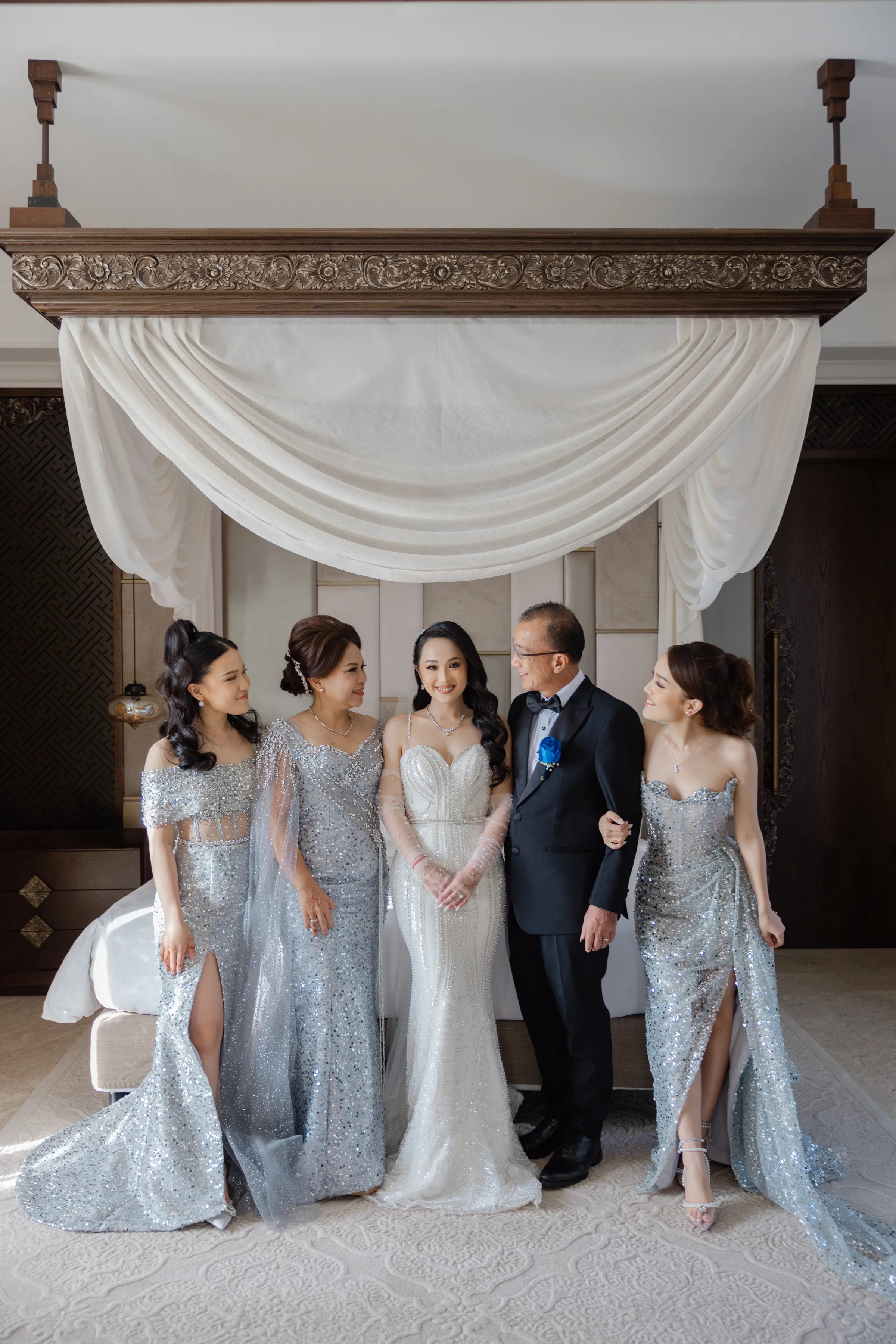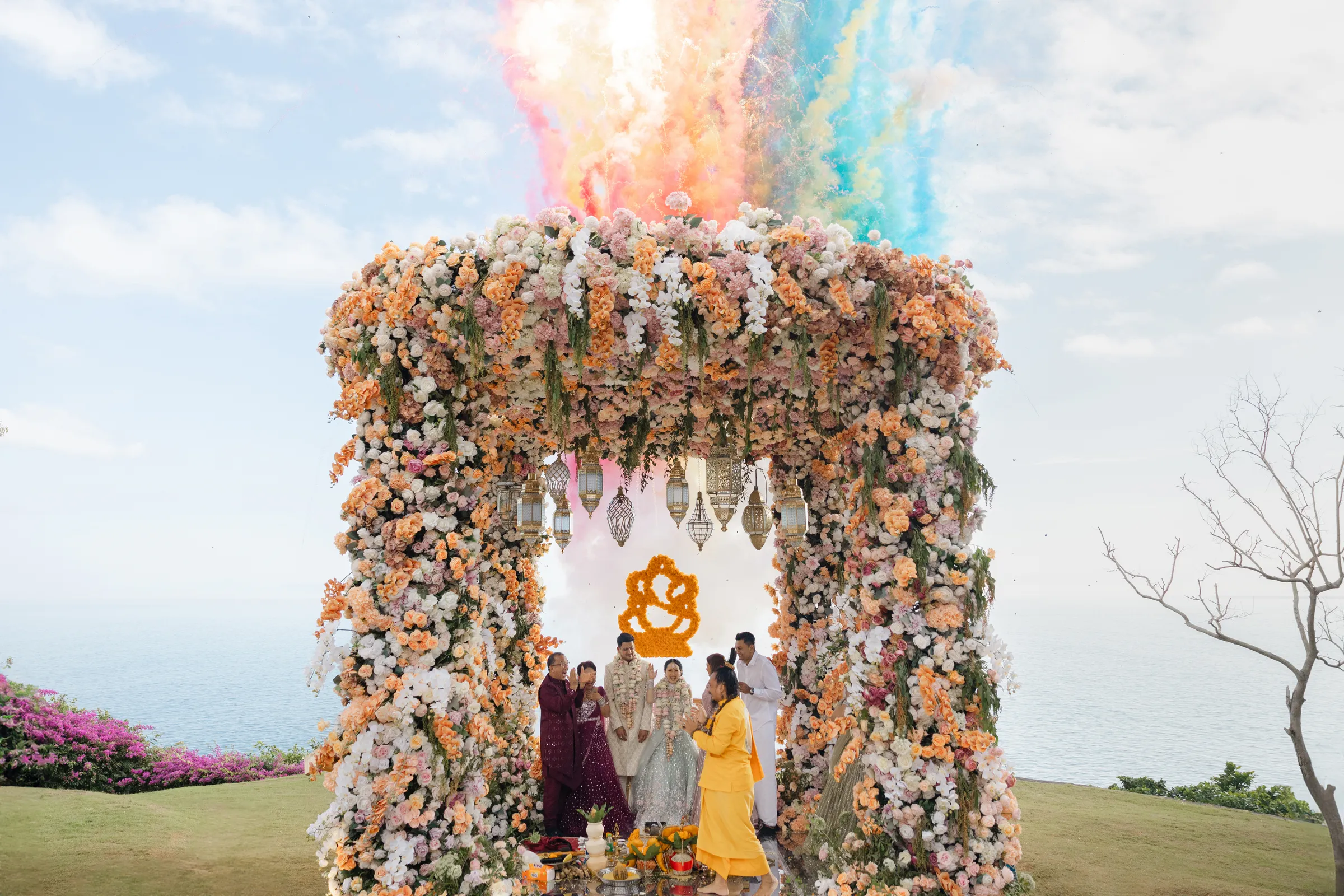 The ceremony was a vibrant mélange of ancient customs and familial joy. Amidst the blooms that adorned the open-air pavilion, the couple took their sacred vows, promising each other a lifetime of togetherness in the presence of their loved ones and the benevolent Balinese sun.