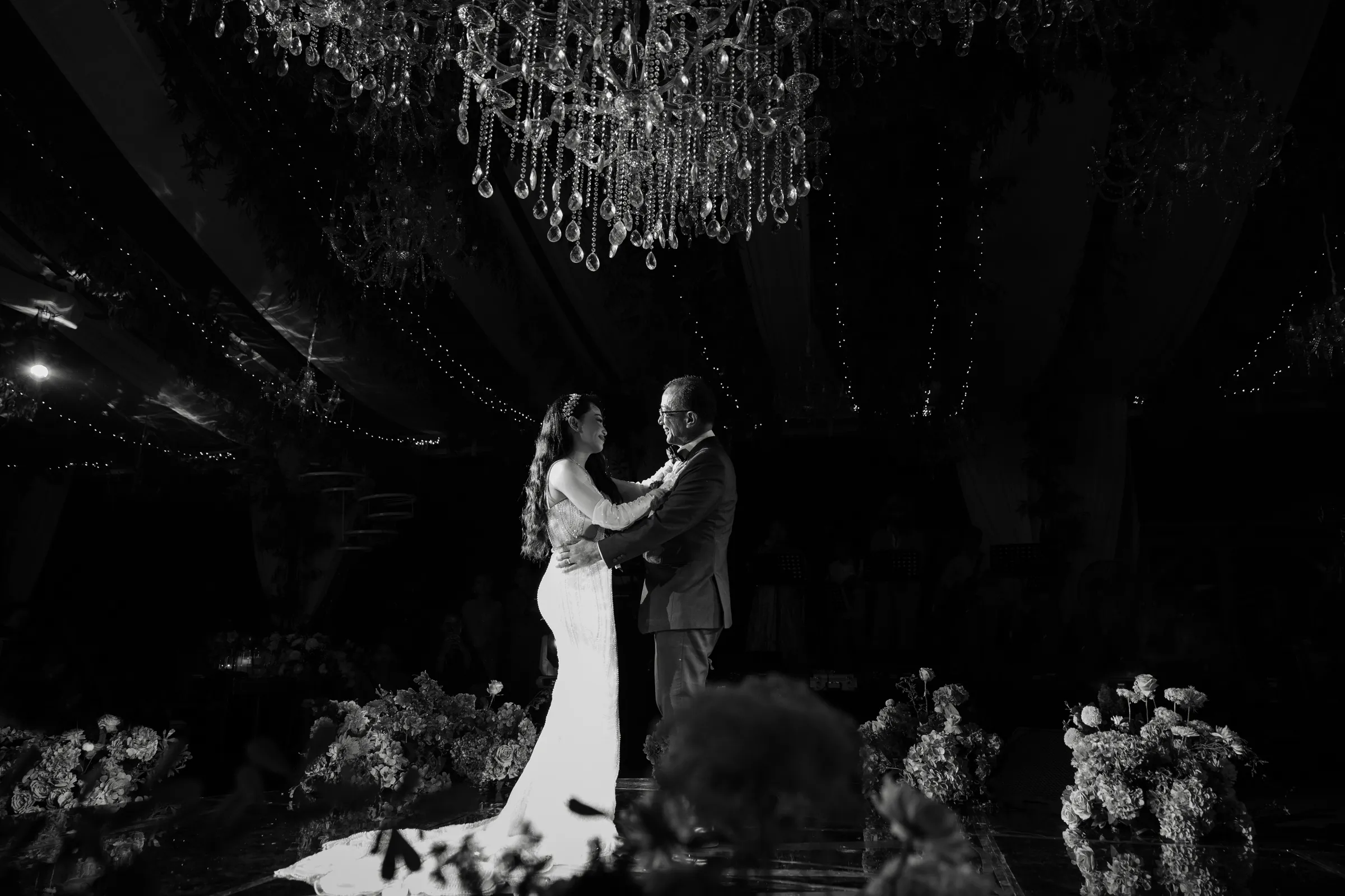 Michelle, now in a classic white bridal gown, was the epitome of elegance. Wikki, dashing in a tuxedo, stood by her side, the very picture of the modern groom. The evening’s celebration was a crescendo of laughter, music, and dance. The air was thick with the scent of flowers and the sound of melodies that crossed cultures and continents. As the couple took to the dance floor, the world seemed to pause, the chandeliers above them catching the sparkle in their eyes.
