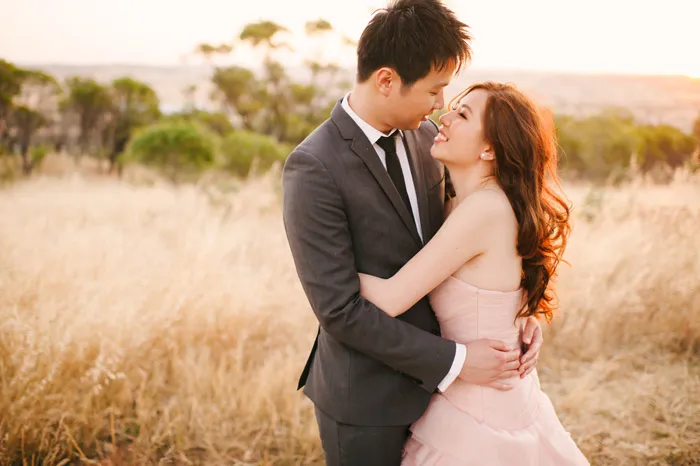 “Perth has some amazing natural landscapes and many of my clients, especially those from Asia, want to incorporate that because it’s quite different from what they see back home. We ventured out just before sunset to create some romantic images set against the beautiful Australian countryside. This shoot was a labour of love and the first of many custom-styled shoots in 2014.”