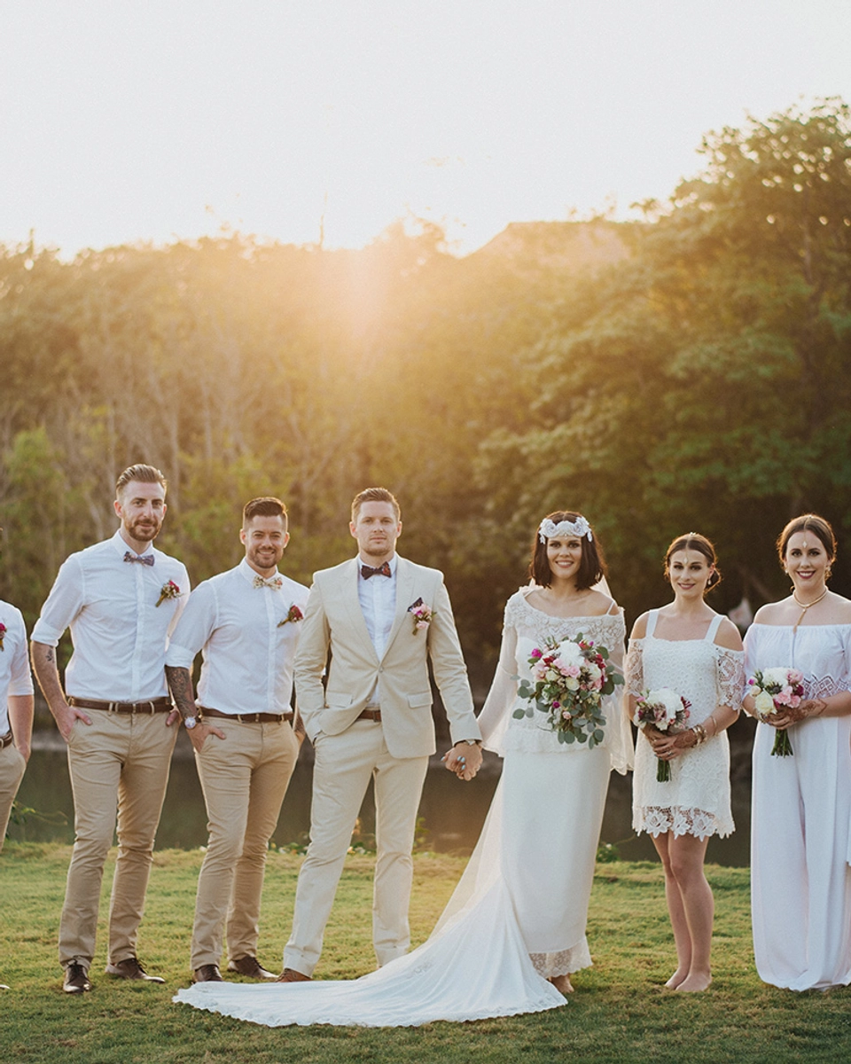 Heather: “Brian and I are from Scotland, and we’ve since relocated to Perth, Western Australia. We love the warmth, relaxing in the sun and spending time with our not-so-small puppy Hendricks, a chocolate lab. We both fell in love with Bali in our own way, so we thought it would be the ideal place to make our commitment to each other, surrounded by our loved ones. The venue and little details were incredible, and the beautiful tree décor was mesmerising.”