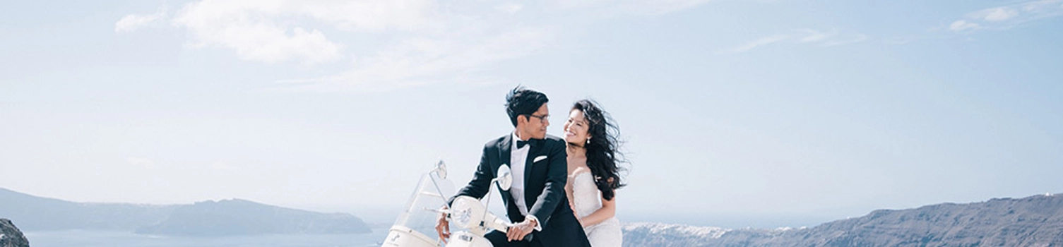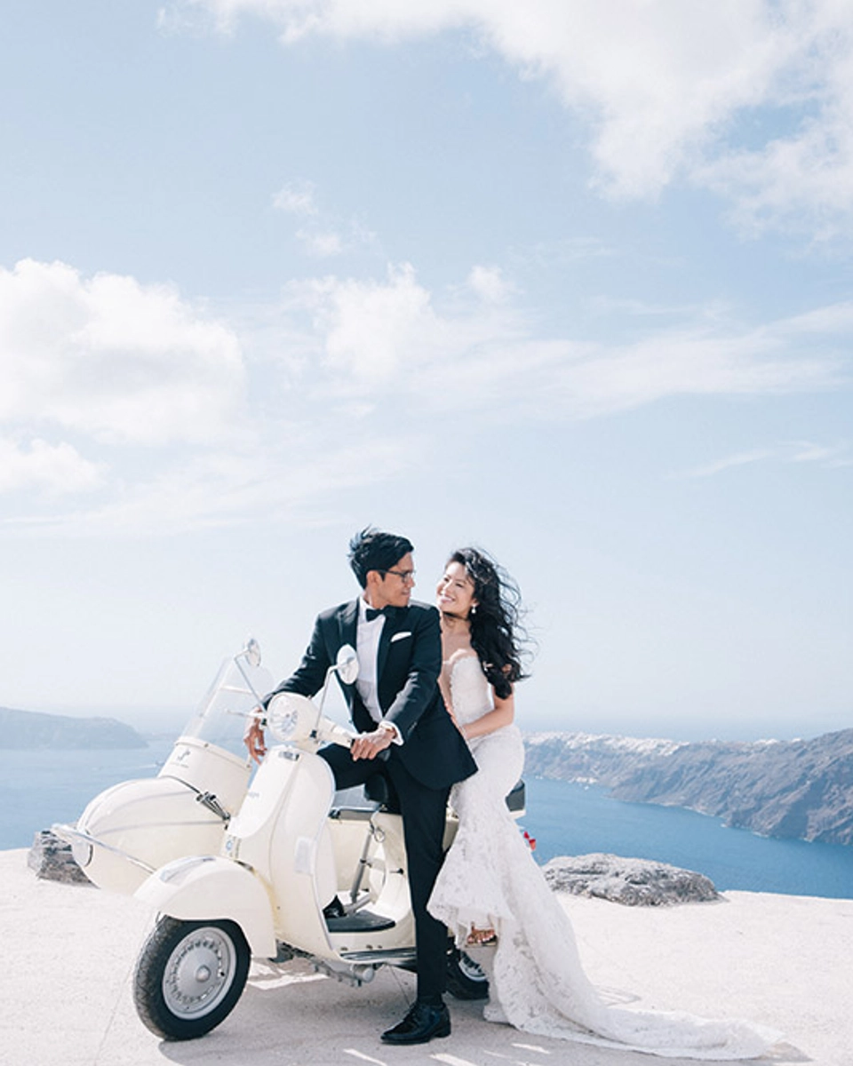 Some places in the world are just made for picture perfect postcards, and Santorini, Greece, is one of them. Situated by the Mediterranean Sea, Santorini’s gorgeous whitewashed buildings are set against the most breathtaking backdrop, where the azure sea meets cloudless blue skies. Now imagine an excited wedding party ready to celebrate the marriage of these newlyweds, and you’ve got yourself a destination wedding they won’t soon forget. Many thanks to Ben Yew Photography for capturing this tastefully simple and traditionally romantic wedding!