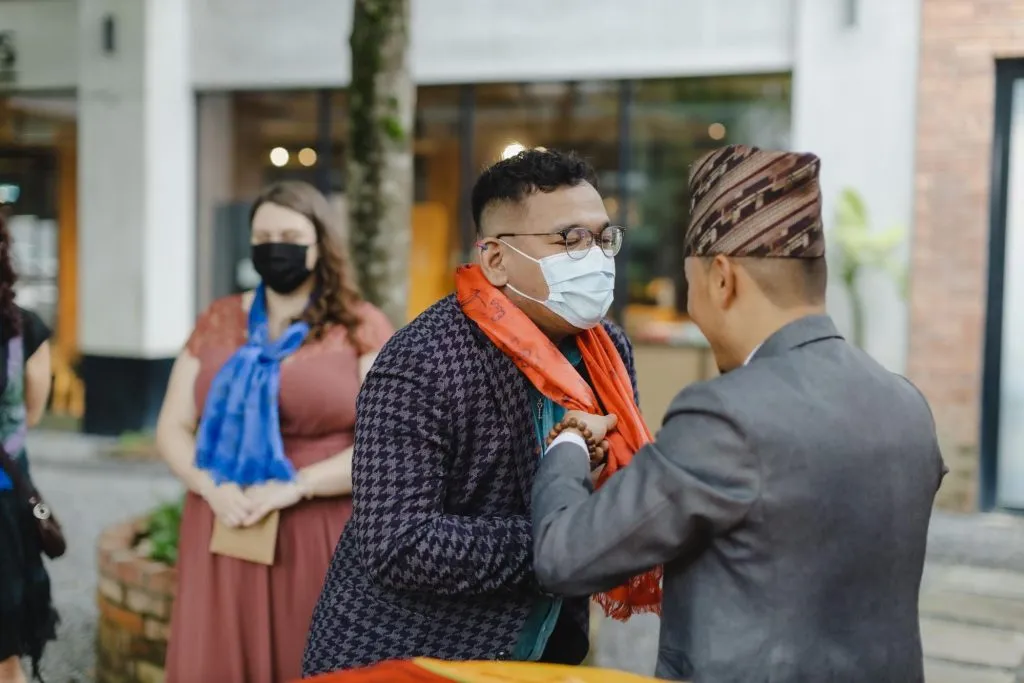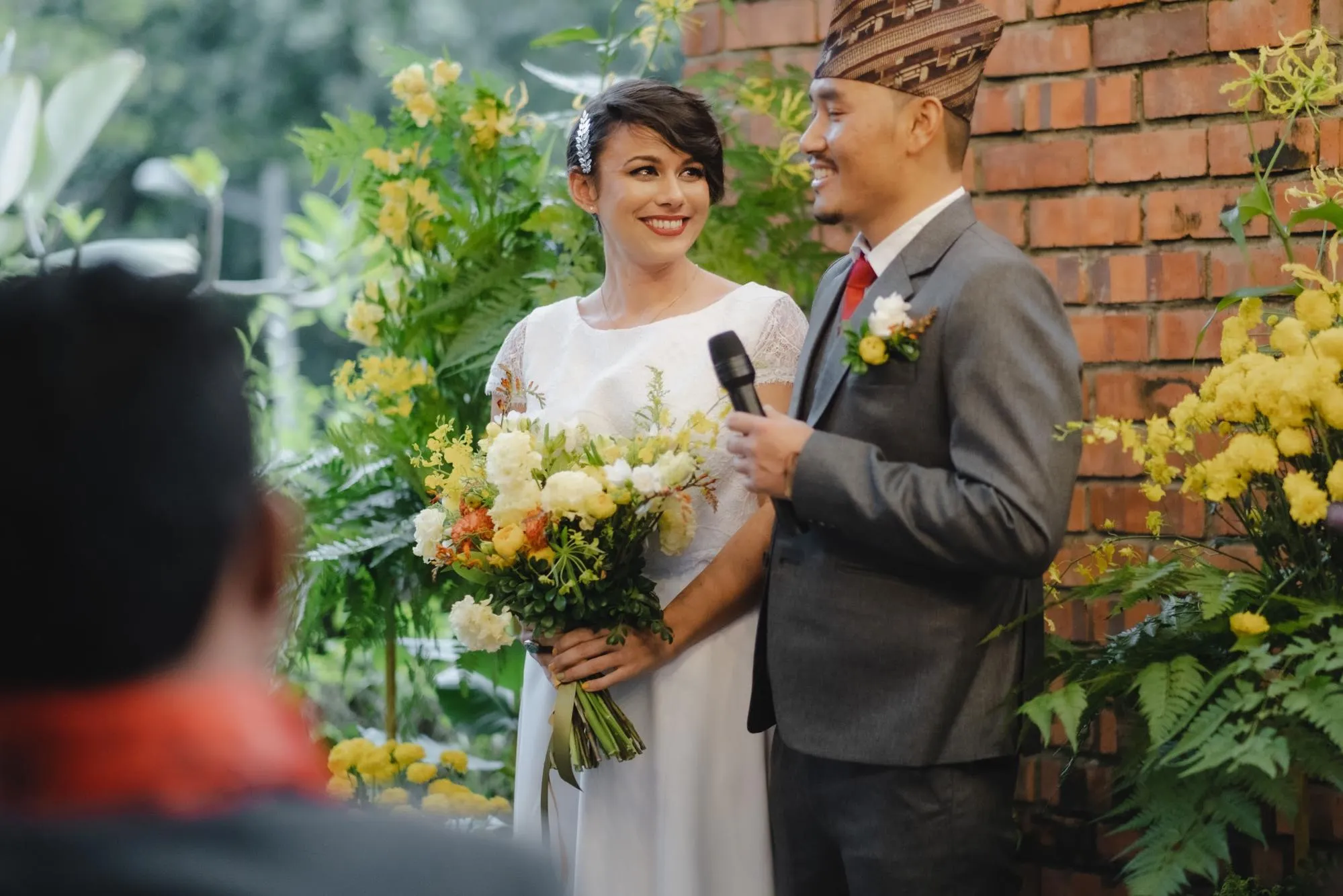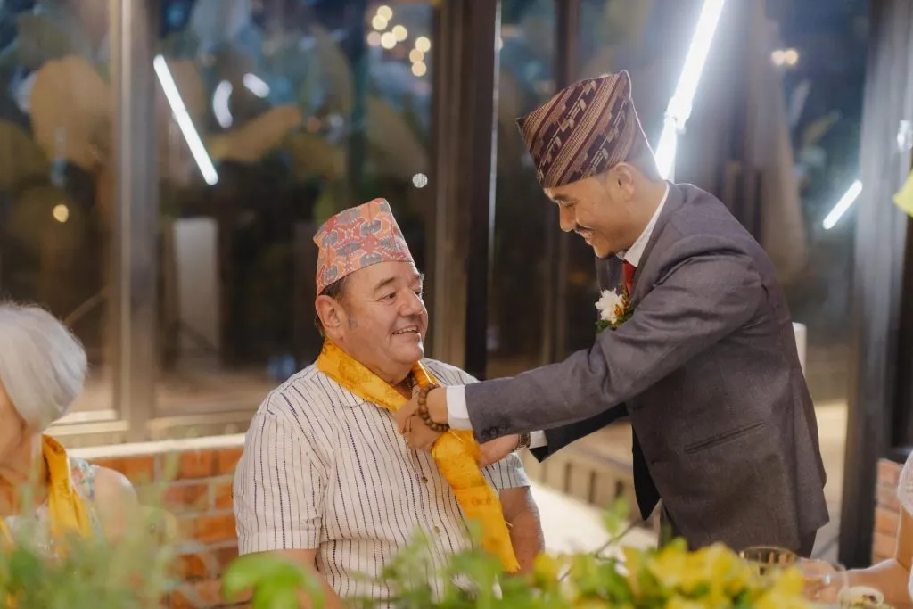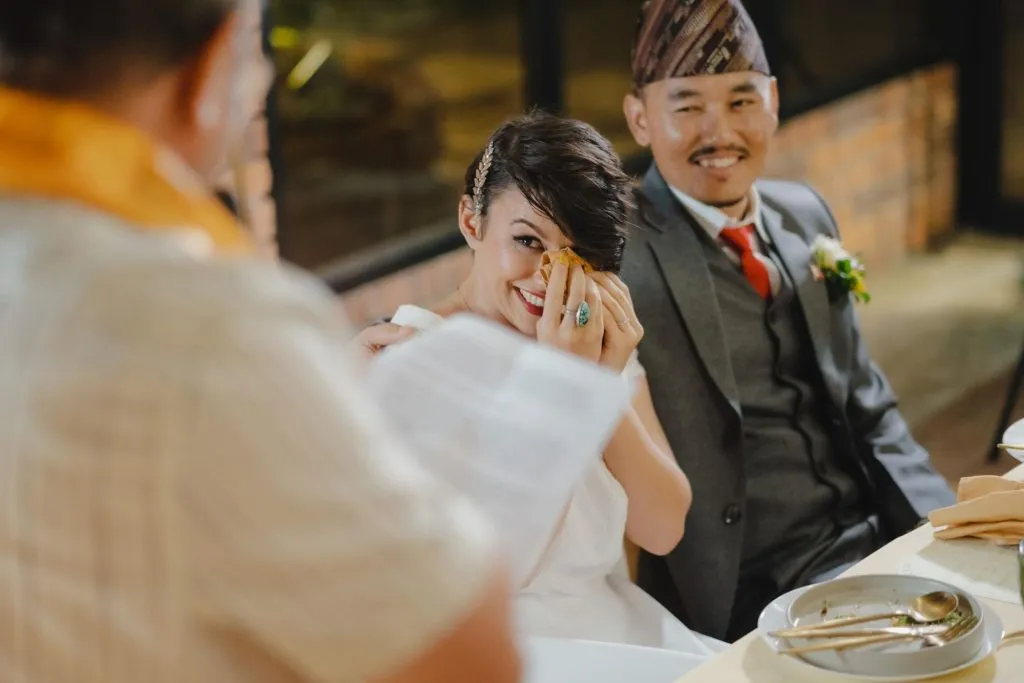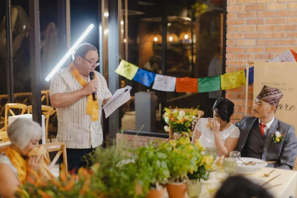 Though the views at Pokok KL pales in comparison to the snow capped glaciated peaks of the Himalayas, here; the focal point is the blending of two special individuals. Clare and Prabin wanted to include customs from their backgrounds into this special day. “Yellow is my favourite colour and Prabin’s is green. Our guests had colourful Tibetan scarves placed around their necks as they arrived. This is a customary greeting in Nepal to wish one’s guests good luck in their coming and going. The place was also decorated with prayer flags which are synonymous to Nepal.” “Our wedding planners had suggested that guests could write their well-wishes on them, which we thought were brilliant!” said Clare.