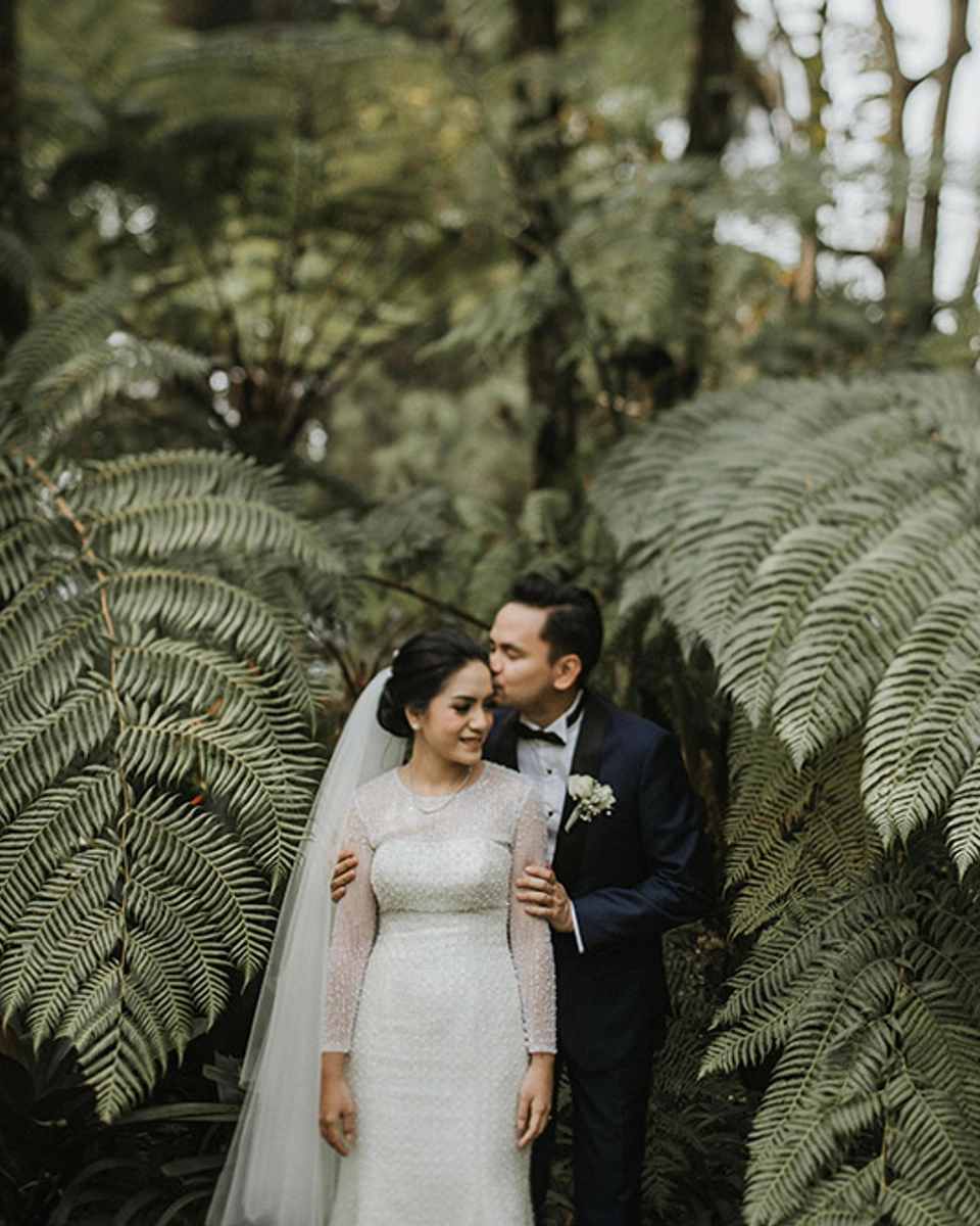 Photography by Iluminen / Videography by Hibiki Studio / Wedding Planning by Project Dea Wedding Planners / Venue Amaryllis Boutique Resort, Ciawi / Number of Guests 300 / Bridal Gown by Jeffry Tan / Bride’s Shoes by Badgley Mischka / Hair and Makeup by Jasmine Lishava / Wedding Bands by Clarissa Tan Jewellery / Wedding Jewellery by Victoria / Groom’s Attire by Kwong Tung / Flowers and Décor by Aryagati / Art and Stationery by Eko Bintang / Wedding Entertainment by Sum It! Production