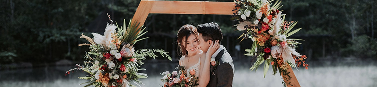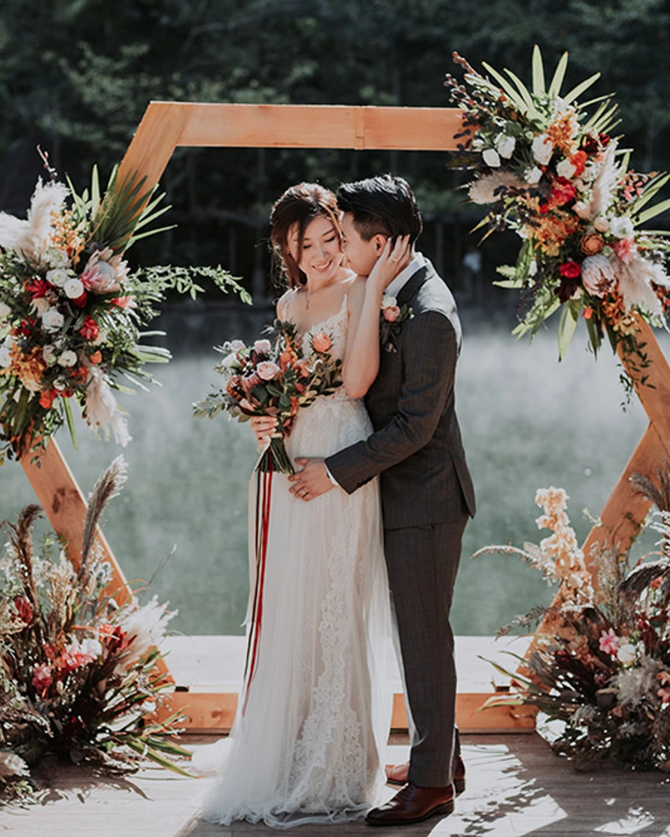 Walking towards the love of your life as you’re about to tie the knot sure can feel like a dream. For this bride, she walked across a bridge and finally arrived at a super chic hexagonal “arch”, set on a ceremony deck that overlooked the hot springs. Imagine exchanging your vows in a place like this! Many thanks to MunKeat Photography for these exceptionally beautiful photos.