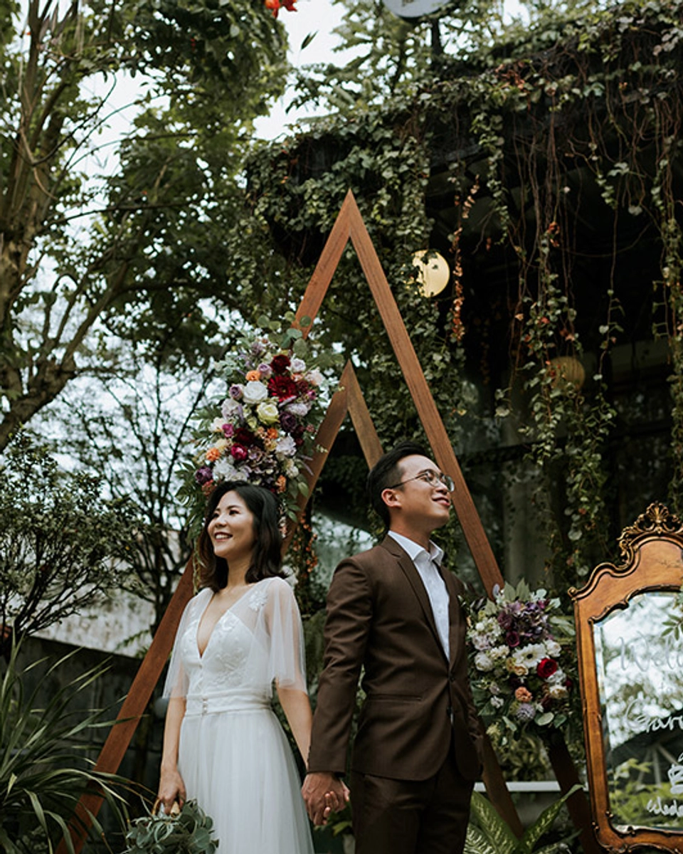 Photography by TRBAN Photography / Videography by Basetime Production / Venue Rowan & Parsley Food Atelier, Johor / Number of Guests 85 / Bridal Gown by Root & Water Bridal Collective / Hair and Makeup by Sasa De Maquillage / Wedding Bands by Stretho Fine Jewellery / Flowers and Décor by Rowan & Parsley Food Atelier / Wedding Cake by Yellow Bake Day / Art and Stationery DIY