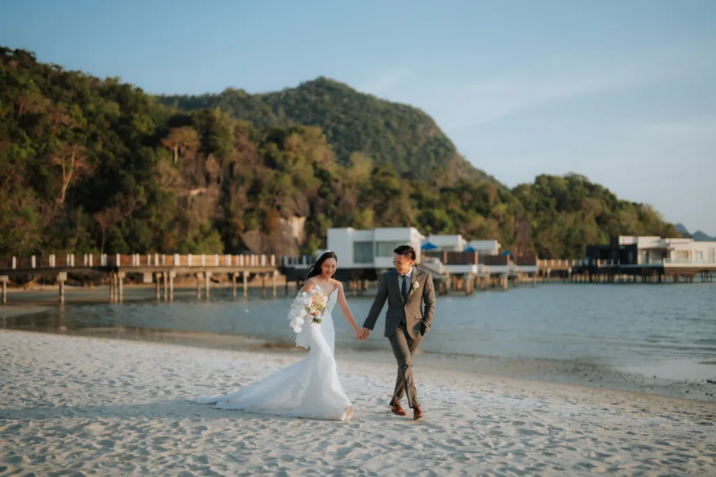 Selecting the right wedding venue can be a challenge, but Joey and Jun Kit had a clear vision in mind. They wanted a an intimate beach wedding, and Langkawi emerged as the obvious choice. Scouting around various resorts, they compared the vibe, facilities, guest capacity, and, most importantly – the venue’s availability. St Regis Langkawi stood out as the perfect blend of resort atmosphere with a touch of class, setting the mood for an intimate celebration. The incredible service offered by the venue left the couple wanting for nothing.