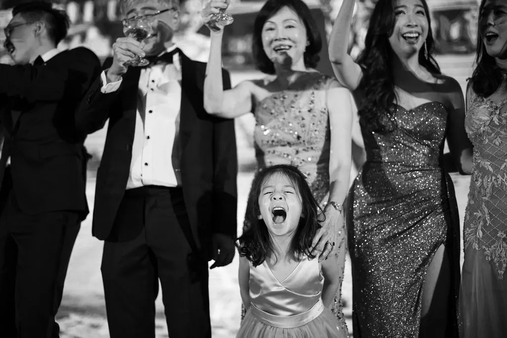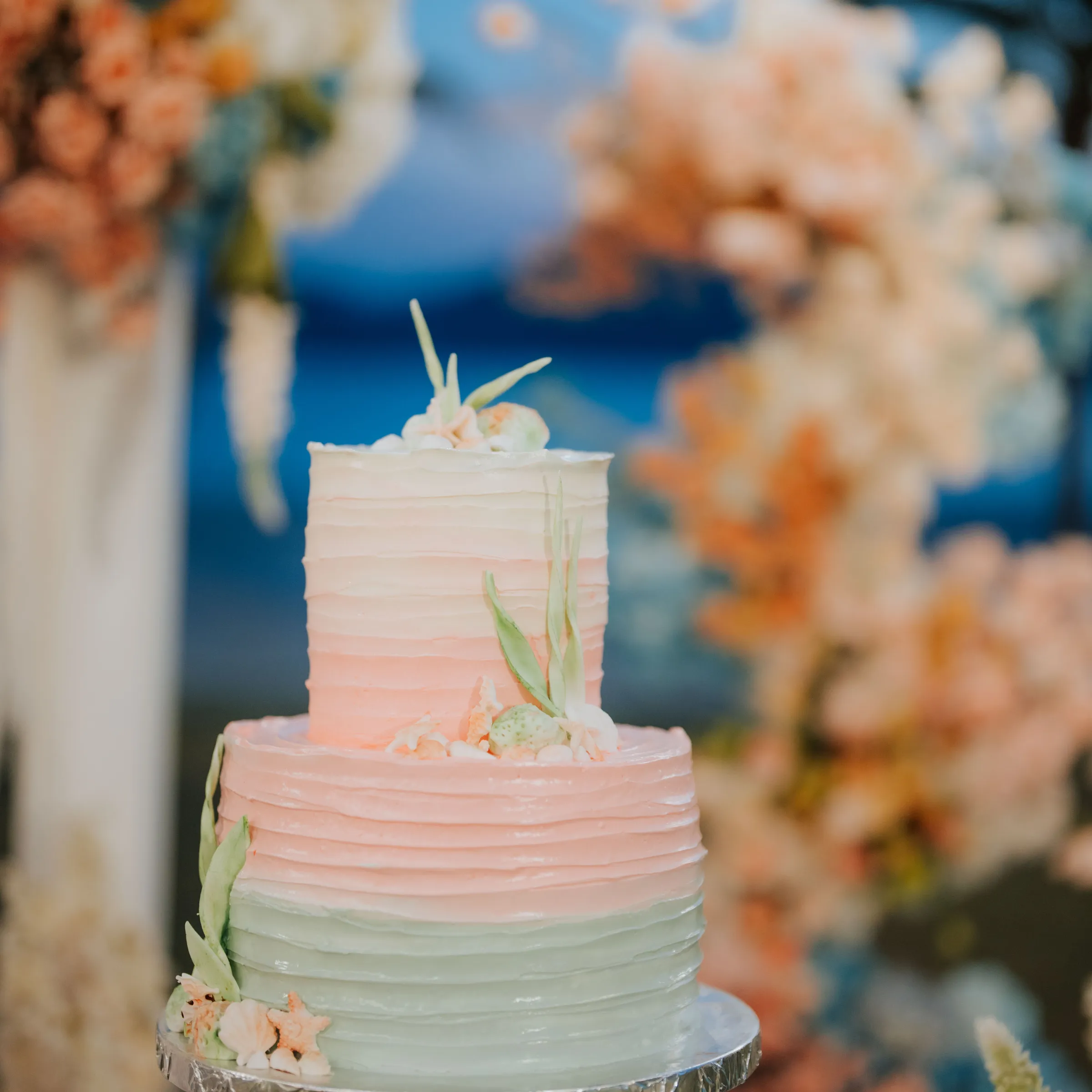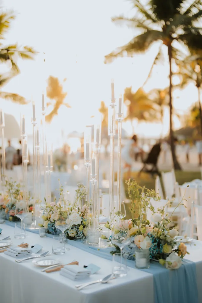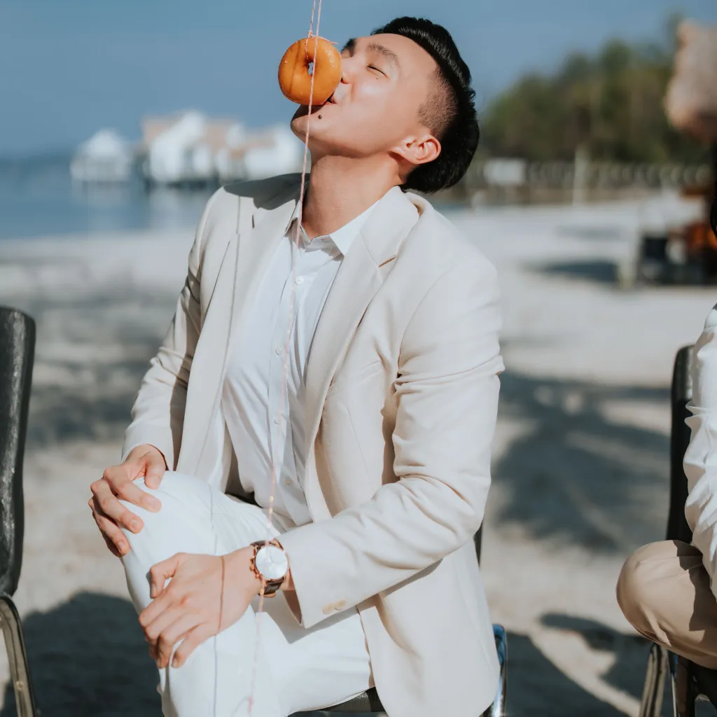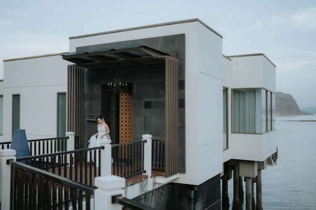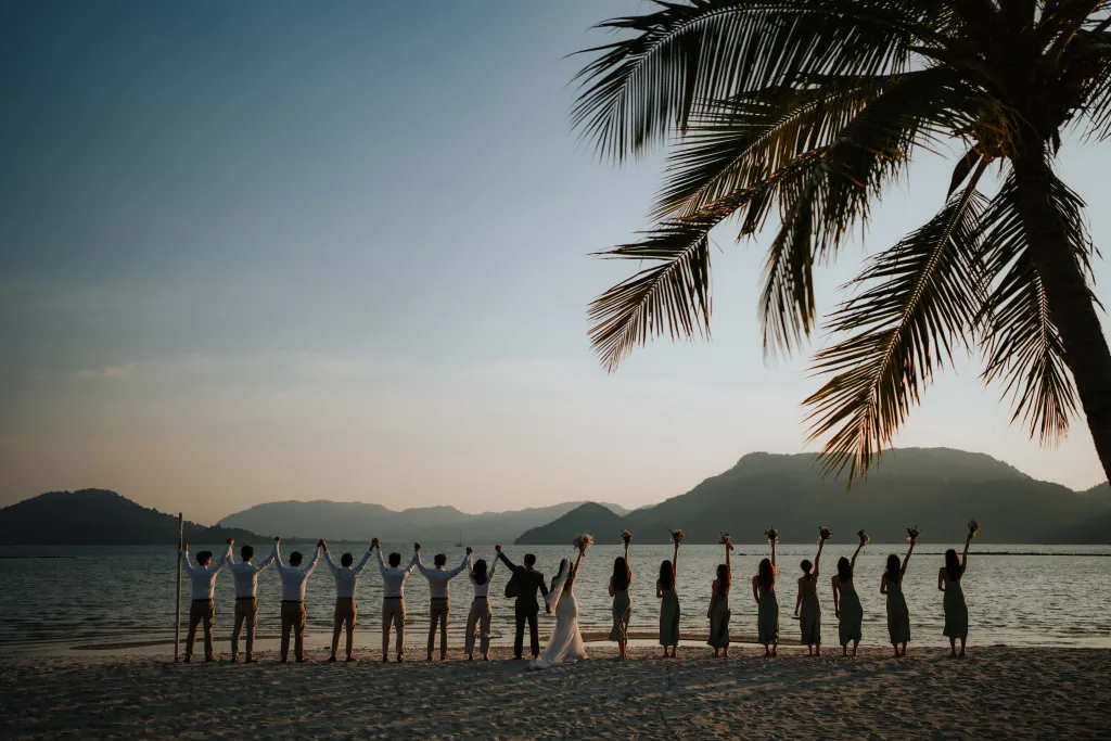 The theme for the day was “resort elegance in white,” a choice that added a touch of sophistication to the beachside ceremony. The day’s events were well planned out: from the morning gate crashing games to the evening vow ceremony and exchange of vows, and finally, the night-time reception dinner. The entire wedding was cherished by the couple as an intimate moment shared with close friends and family. Blessed with beautiful weather, one moment that truly stood out for them was the stunning sunset that cast a romantic glow during their vow ceremony.