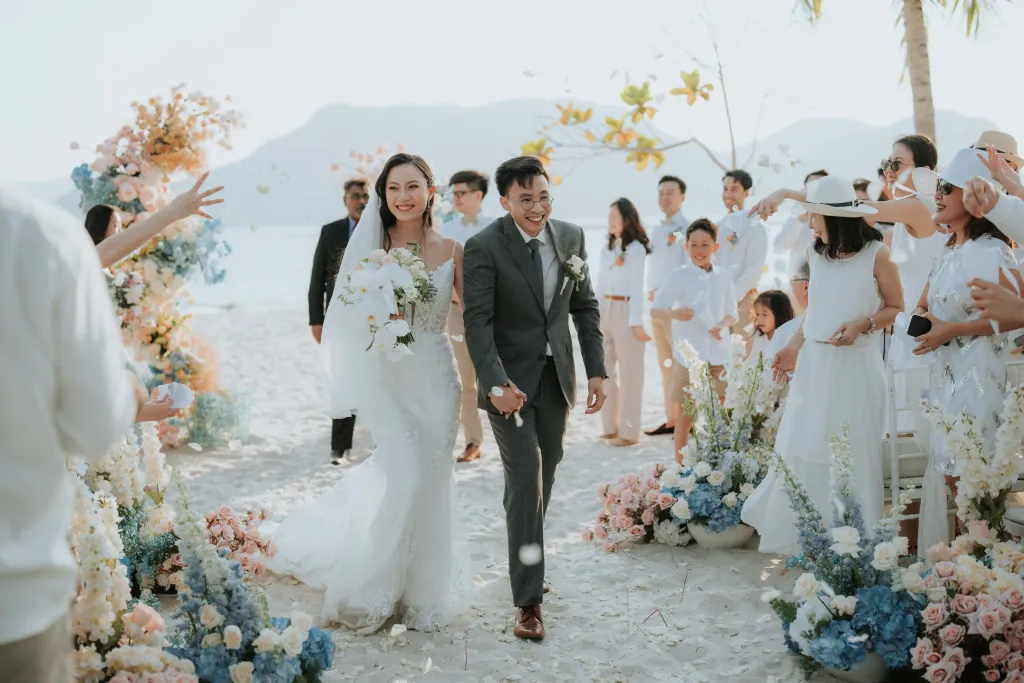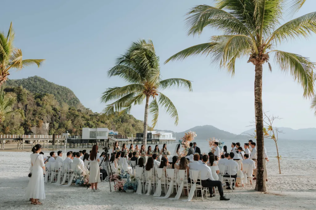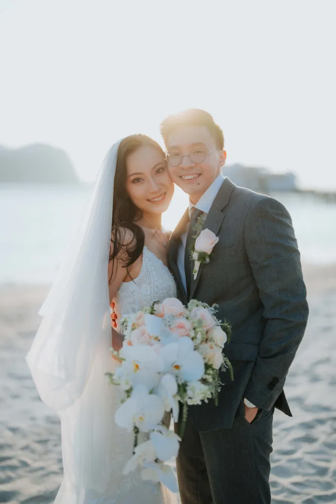 Joey and Jun Kit celebrated their union in a beautiful beachside wedding at St Regis Langkawi. Their love story began during their A-levels. Joey and Jun Kit shares a passion for sports and had the unique experience of co-organizing an event together in their college years, allowing for plenty of time spent together, which lead to a decade of romance before they tied the knot.