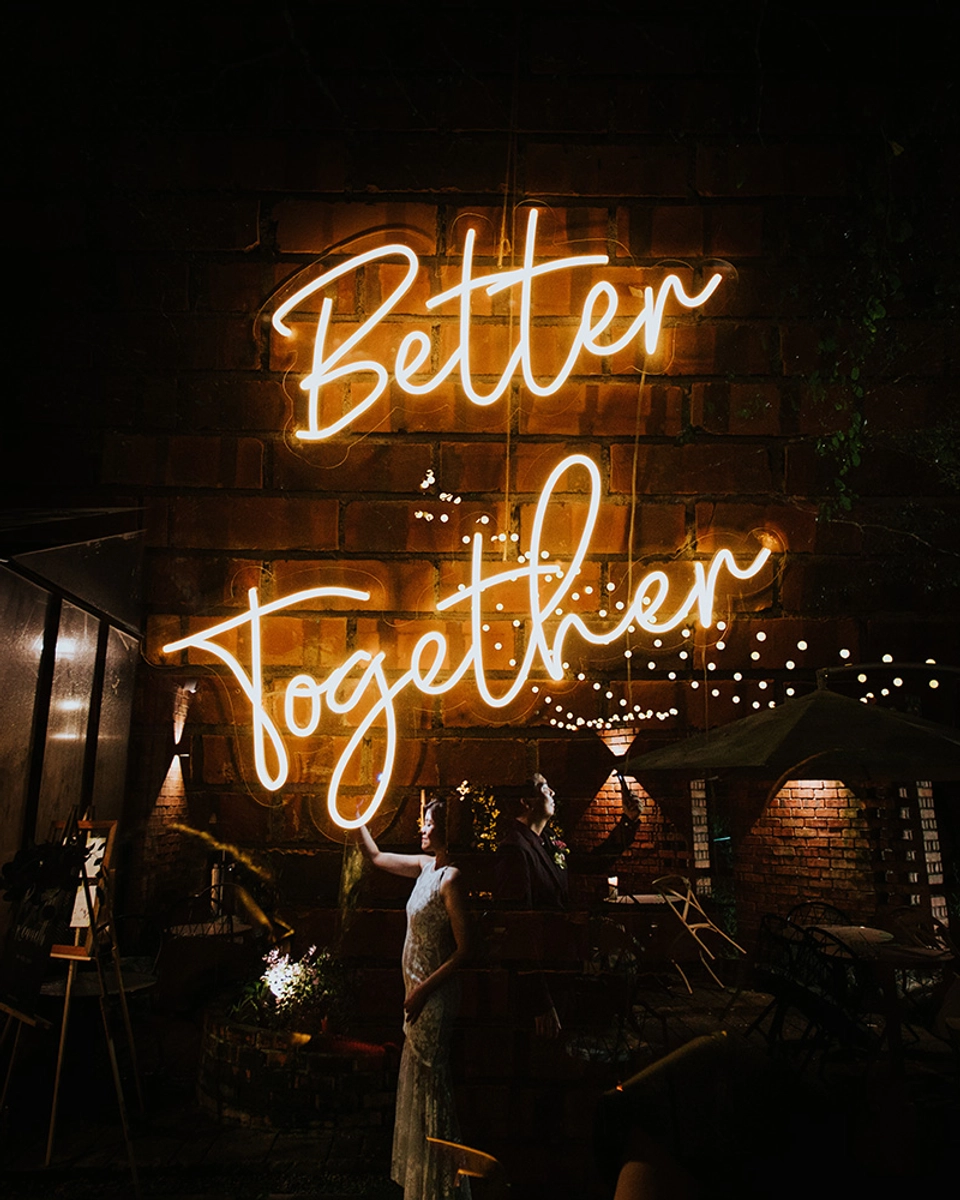 The brick wall aesthetic is always a rustic touch. Pair it with bright pops of yellow, orange and blush pink, and you get a vibrant wedding celebration filled with joyful vibes. We love that the colour palette was “lemonade citrus”, with actual lemons as part of the décor. Keeping it intimate and small, the bride and groom exchanged their vows in front of just 50 guests, against a gilded hexagonal arch as their backdrop. Thanks to Louis Gan Photography for capturing this sweet set of photos!