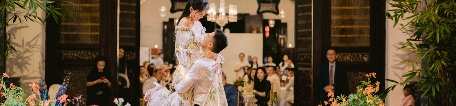 Nestled in the heart of Penang, The Blue Mansion—Cheong Fatt Tze’s legendary indigo-hued courtyard house—became the stage for Ann Ee and JL’s grand wedding. Chosen for its breathtaking architecture and cultural resonance, it was more than just a venue; it was a vibrant tapestry that echoed their Malaysian roots and love for heritage. Its open-air courtyard, grand staircases, and intricate carvings created a romantic ambiance for the 133 guests who gathered to celebrate love.