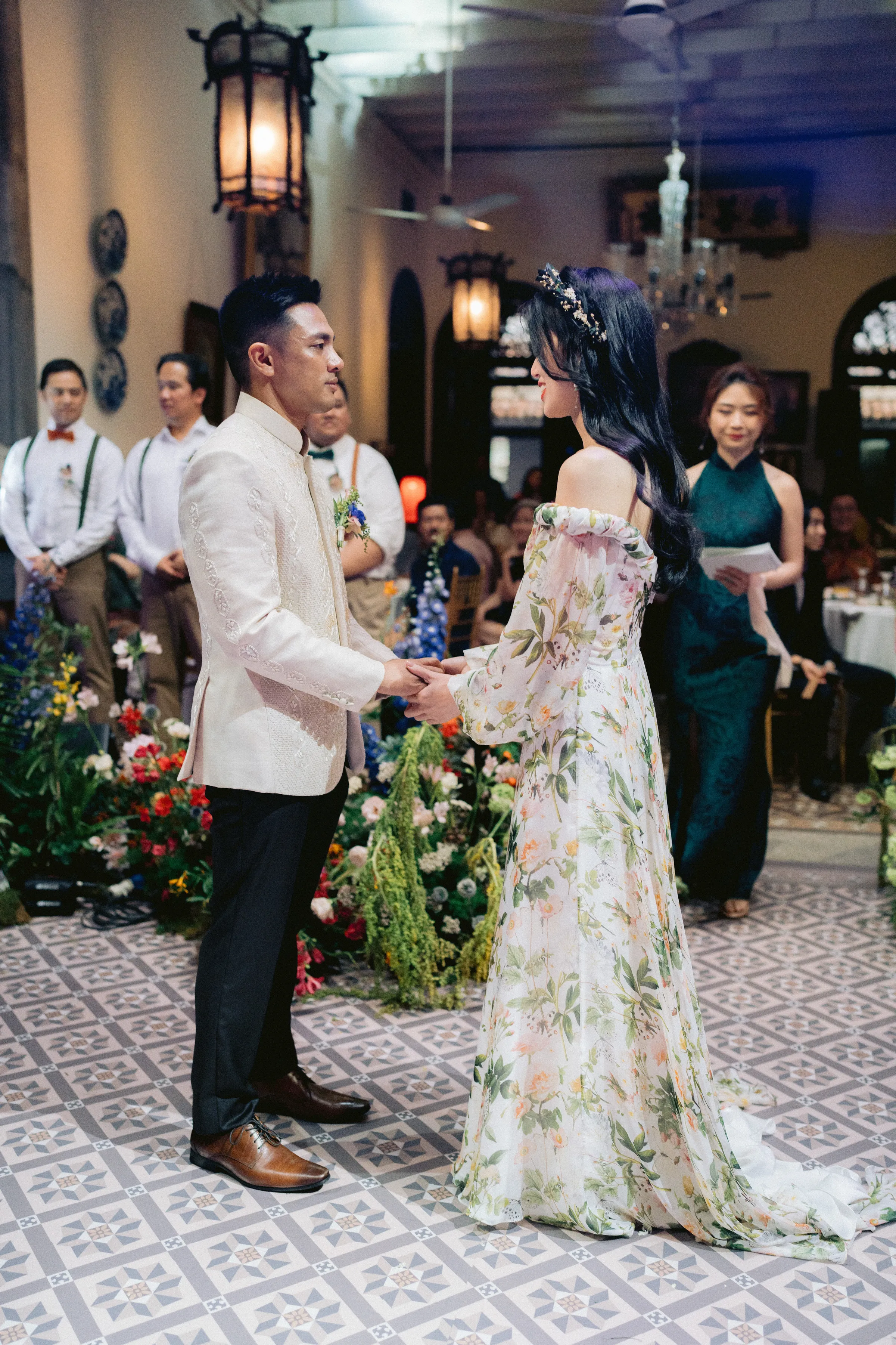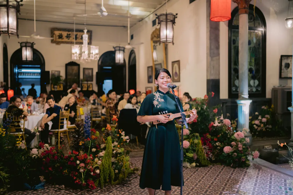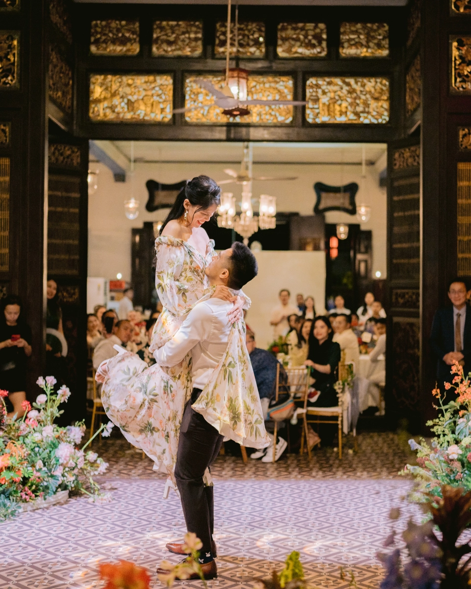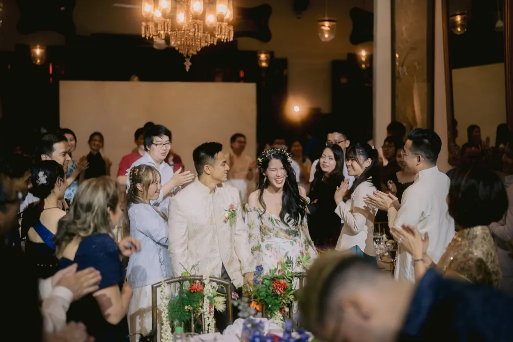 When asked about their most memorable moments, JL replied that the gatecrashing and tea ceremony stood out. As an Australian of Filipino descent, they were especially memorable for him since he and his family had never experienced something like that before. Ann Ee echoed her partner’s sentiment. “The vows, our first dance, and dancing with everyone during the afterparty. Standing in the middle of the courtyard, surrounded by our loved ones, the beautiful decor and architecture of The Blue Mansion was magical. I could barely compose myself when we exchanged our vows and felt enraptured as we danced with each other during our first dance. The night ended so beautifully with all our friends and family from different parts of our lives dancing together.”