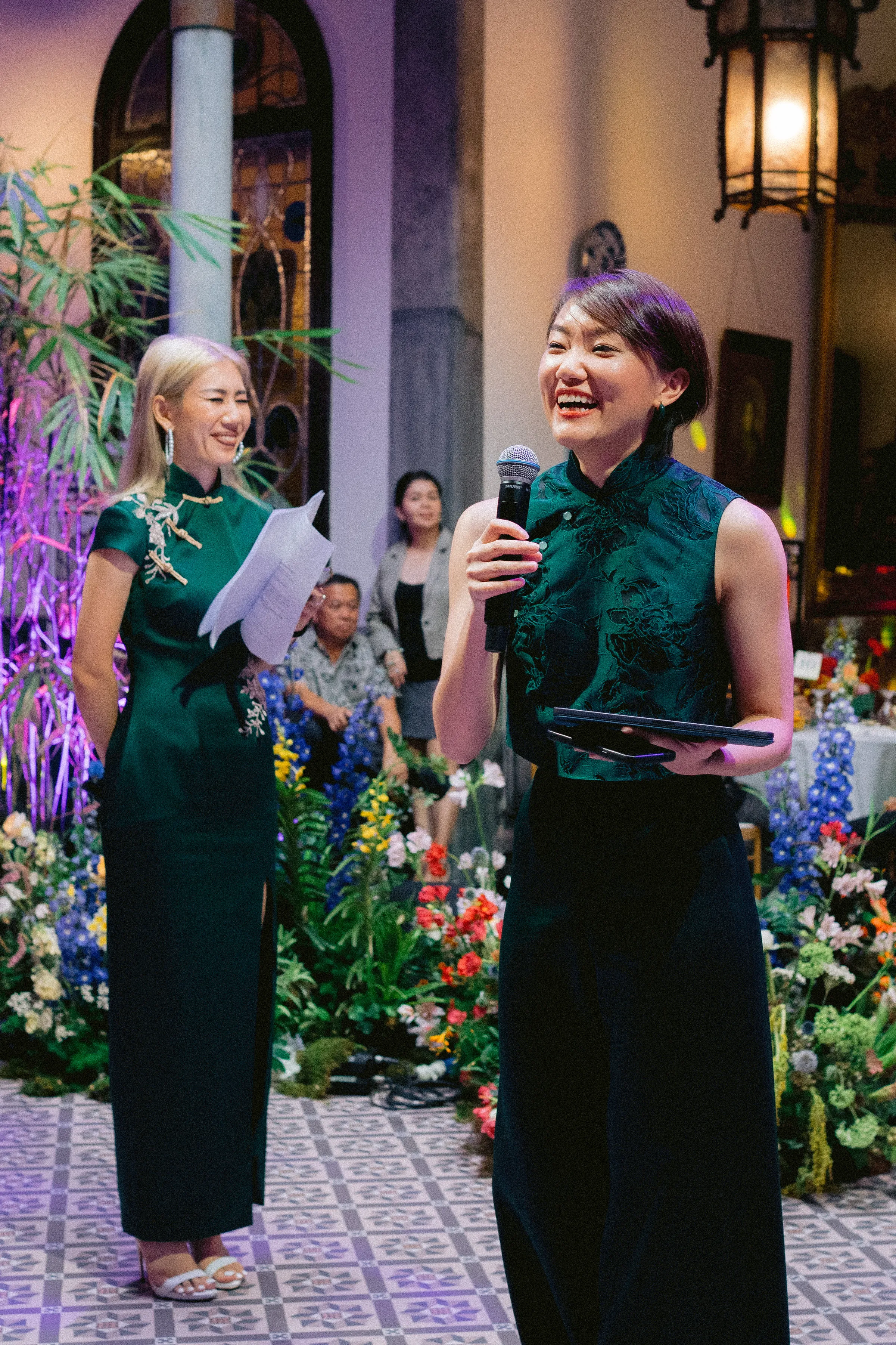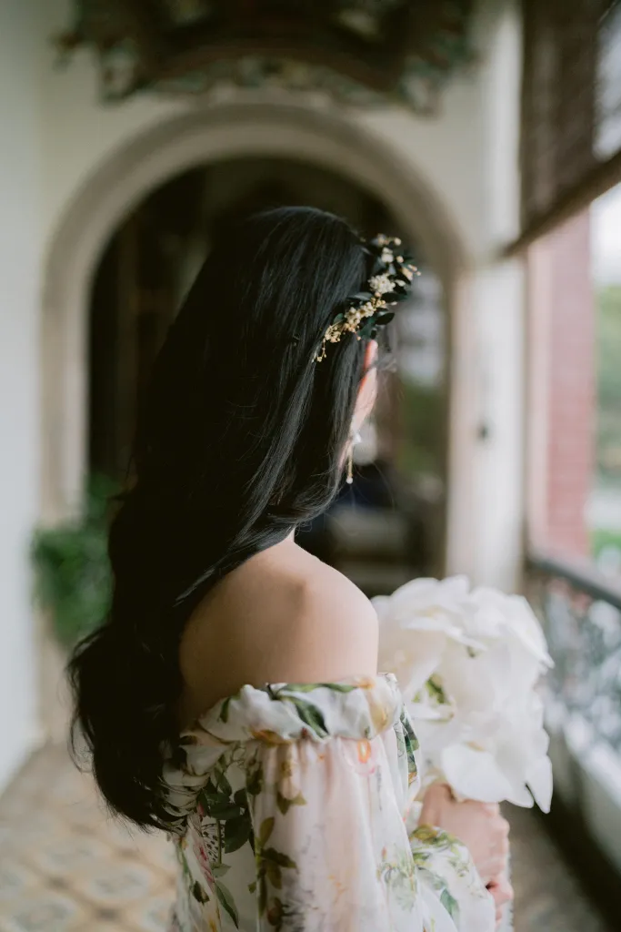 The decor, a cornucopia of color and texture by Daun & Petals, complimented the mansion’s already picturesque nature. The florals were not merely ornamentation; they were emblematic of Ann Ee and JL’s story. Orchids, Ann Ee’s mother’s favored bloom, formed her bouquet, while carnivorous plants from her collection added an unexpected twist to JL’s boutonniere. They also represented plants from Ann Ee’s (a self-proclaimed plant lady) home collection. The Sampaguita (Sambac jasmine) adorning the couple chairs was an added feature to celebrate JL’s Filipino heritage.